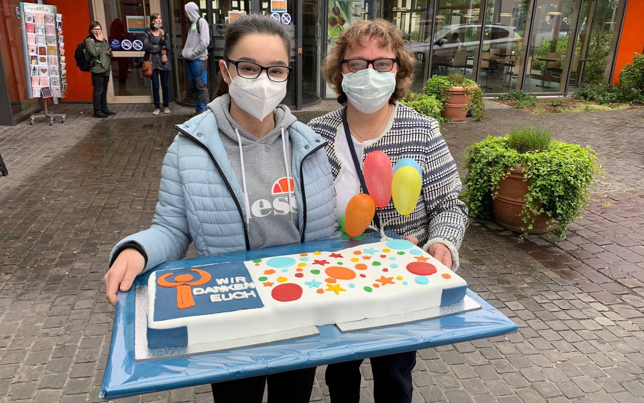 Riesiger DANKE-Kuchen für Elisabeth-Krankenhaus