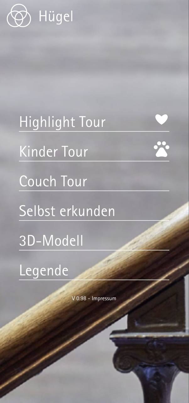 Mit vielen Premieren startet die Villa Hügel in ihr Jubiläumsprogramm. Nach dem offiziellen Festakt mit Bundespräsident Frank-Walter Steinmeier am 10. Februar gibt es bis Ende März täglich (außer Montag) Vorführungen der Transmedia-Echtzeitinstallation "Kontraste". Hierbei werden ab 18:30 Uhr abstrakte Muster basierend auf historischem Material und Sounds immer wieder anders auf das Haus projiziert und abgespielt. Dazu gibt es eine neue App, die uns die Geschichte der Villa Hügel im wahrsten Sinne des Wortes nochmal neu vor Augen führt. Dabei werden in der Villa und im Park mit QR-Codes zusätzliche Infos unter anderem in Form von Bildern und 3D-Modelle angezeigt. Dies ist auch von zuhause aus möglich.
