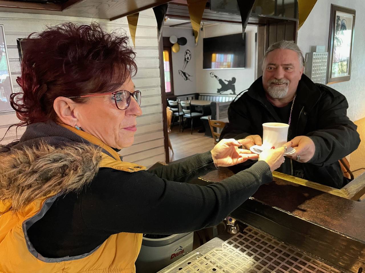 Nicht nur die Nachbarschaft trifft sich regelmäßig in der Kneipe in Frintrop. Auch zum Beispiel Besucher aus der Schweiz kommen ein bis zweimal im Jahr vorbei. Bei Silke Schulte sind alle gleich. Das war auch beim Besuch von Willi Herren so. Seine CD wurde gerne entgegengenommen,- dann aber auch wieder sofort zur Seite gelegt. Einige Gäste sind schon seit 20 Jahren hier. Sie kommen zum Knobeln, feiern oder einfach nur quatschen. Manchmal ist es so, dass einzelne so lange bleiben bis alle anderen Gäste weg sind. Dann haben sie Silke Schulte für sich ganz allein und dann werden bis zwei oder drei Uhr in der Nacht alle Probleme besprochen. Für viele ist die Gastwirtin die "Gigmama" und der "Seelendoktor" von Frintrop.