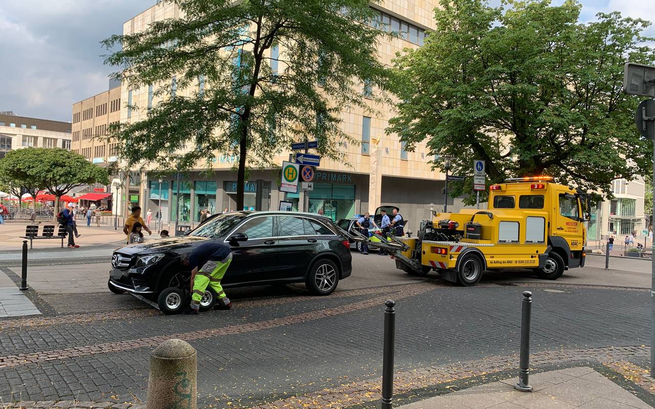 Die Stadt Essen verweist außerdem darauf, dass die Abschleppunternehmen das Fahrzeug nur auf einem Betriebsgelände auf dem Essener Stadtgebiet abstellen dürfen. Die beauftragten Firmen sind nach einer europaweiten Ausschreibung Abschleppdienst P&P aus Bergerhausen, Ermes GmbH aus Stoppenberg, Krings GmbH aus Kray und der Straßendienst Meister aus dem Westviertel.