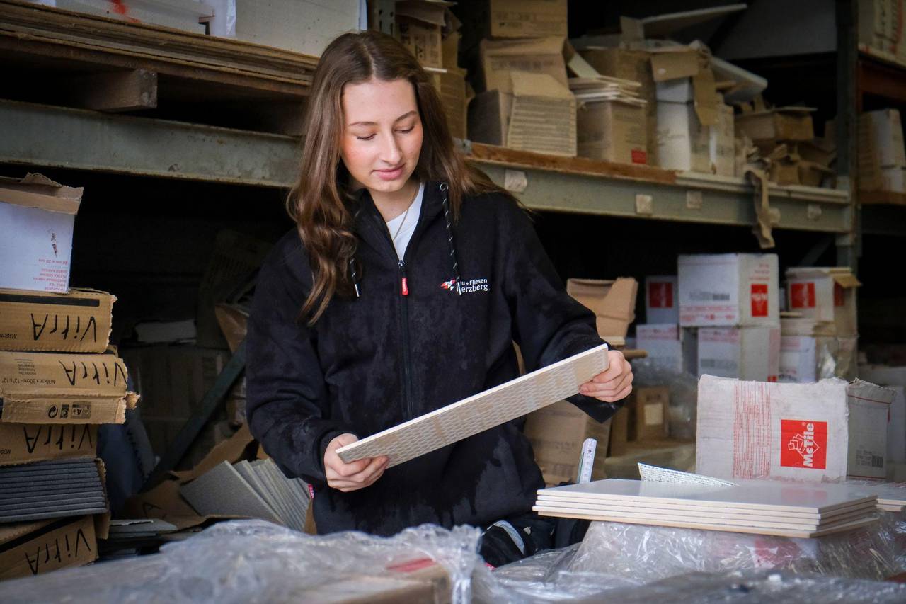 Daher entschied sie sich, ein Freiwilliges Handwerksjahr (FHJ) zu absolvieren – innerhalb von zwölf Monaten lernen Teilnehmende den Alltag in vier Handwerksberufen durch Mitarbeit in Fachbetrieben kennen. «Schon gleich bei meiner ersten Station stand für mich fest, dass ich Fliesen-, Platten- und Mosaiklegerin werde», erzählt Celine Köster, die inzwischen im ersten Ausbildungsjahr bei Bau und Fliesen Herzberg in Kiel ist.