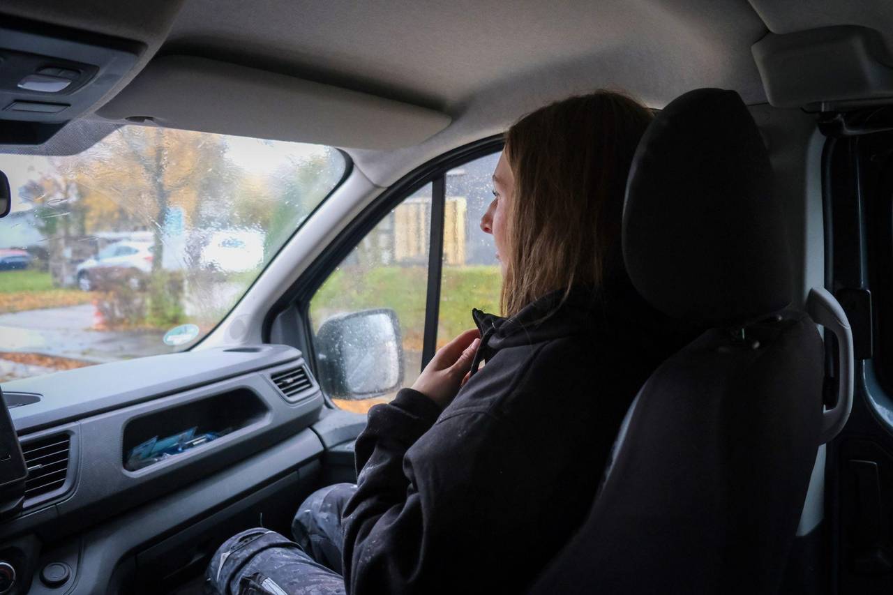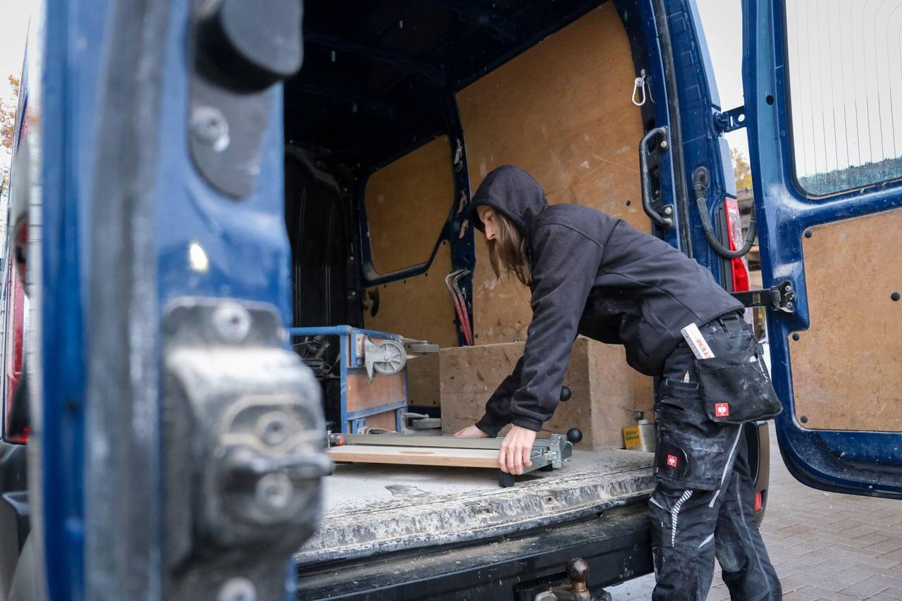 Auf dem Weg zur Baustelle: Celine Köster, angehende Fliesen-, Platten und Mosaiklegerin, hat dort schon früh die Zusammenarbeit mit anderen Gewerken kennengelernt. © Zacharie Scheurer/dpa-tmn