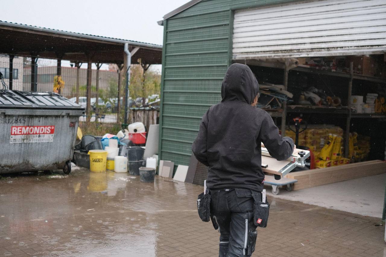 Auf dem Weg zur Baustelle: Celine Köster, angehende Fliesen-, Platten und Mosaiklegerin, hat dort schon früh die Zusammenarbeit mit anderen Gewerken kennengelernt.