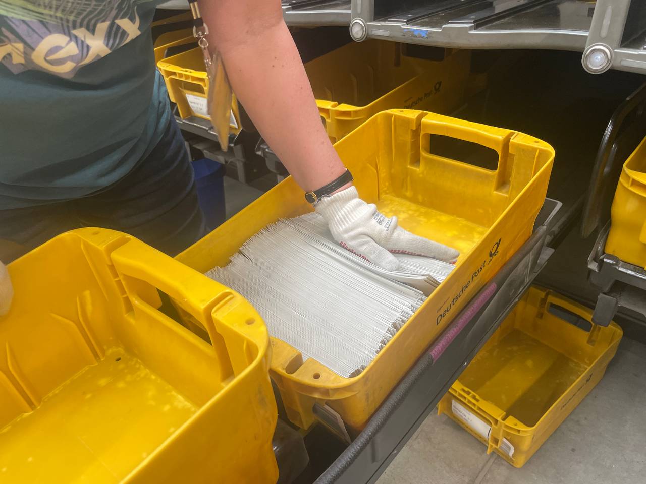 Insgesamt neun Tonnen Post verlassen am Samstagmorgen (04.05.) das Briefzentrum in Vogelheim. An der Daniel-Eckhardt-Straße werden über 400.000 Wahlbenachrichtigungen an die Essenerinnen und Essener rausgeschickt. Würde man alle Wahlbriefe, die in Essen versendet werden, aufrecht hintereinanderstellen, wäre die Briefschlange um die 350 Meter lang. Das ist einmal vom Haupteingang des Hauptbahnhofs die Kettwiger Straße runter bis zur Lichtburg. Anders als in den letzten Jahren sind es in diesem Jahr richtige Briefe mit einer roten Markierung. In den letzten Jahren seien die Benachrichtigungskarten zu sehr untergegangen oder mit Werbung verwechselt worden, sagt Sprecherin Britta Töllner.