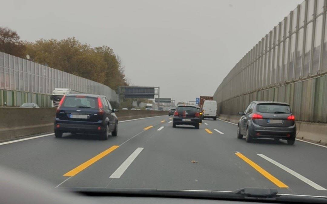 Autobahn in Essen mit falschen Markierungen
