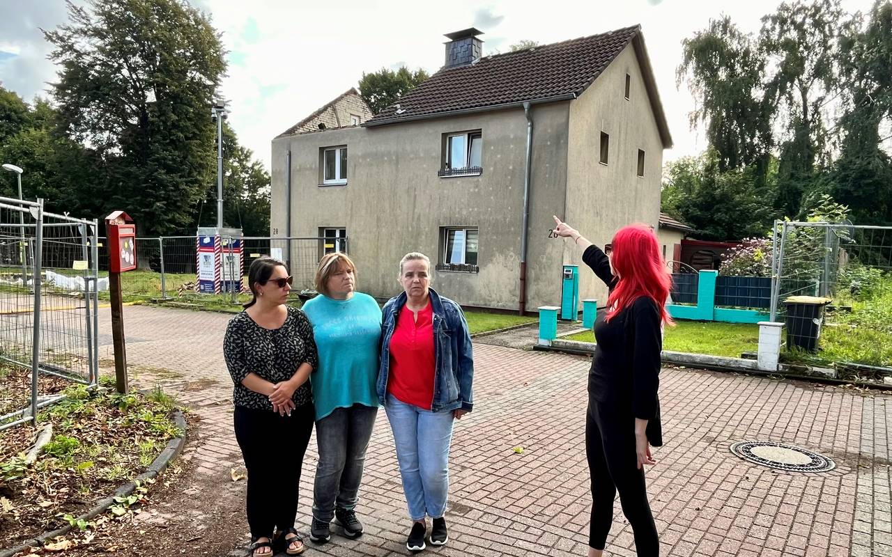 Aber der Abriss in der Literrode in Essen geht weiter. Wenn Sarahs Nachbarhaus weg ist, kommen fünf weitere Doppelhaushälften weg. Die blanken Mauern sollen gegen Feuchtigkeit und Kälte abgesichert werden. Dafür nehmen die Handwerker Ziegel und Dachpfannen der abgerissenen Häuser. Dass es laut und staubig wird, lässt sich nicht vermeiden, sagt der Allbau. Wie lange die letzten Mieter der Litterrode noch bleiben dürfen, entscheidet das Amtsgericht Steele. Anfang September sind zwei Termine. Die sollen direkt in der Wohnsiedlung sein, nicht im Gerichtsaal, sagen die Anwohner. Dass sie ausziehen müssen, hatte der Allbau den Mietern schon vor etwa anderthalb Jahren angekündigt. Von den insgesamt 36 Doppelhaushälften sind bisher 16 abgerissen.