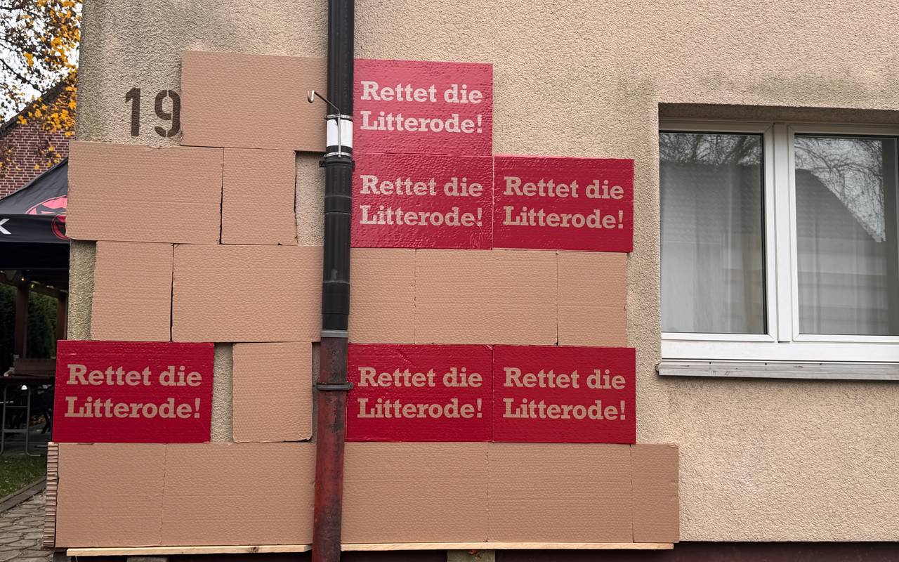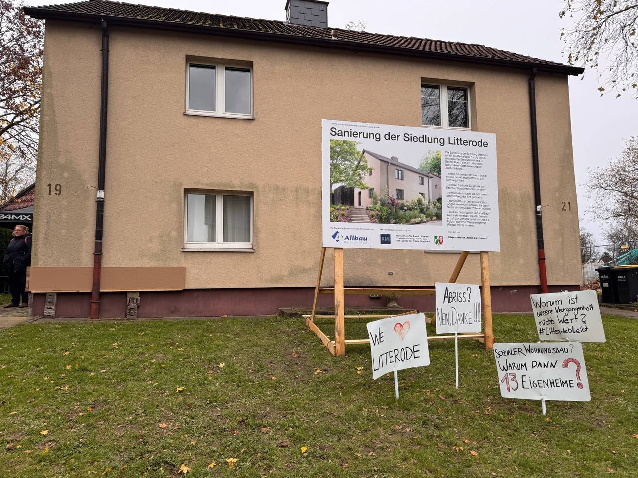 Mit der Aktion "Rettet die Litterode" wollen die Anwohner der Siedlung erneut ein Statement setzen und um den Erhalt ihrer Häuser kämpfen. Dafür veranstalteten die Anwohner am Samstag (23.11) eine Sanierungsaktion. Mit Pappe beklebte die Nachbarschaft die Hausnummer 19. Ziel der Aktion: Die Allbau GmbH soll die bestehenden Häuser sanieren anstatt sie abzureißen. Auf die geplante Aktion hat die Allbau GmbH reagiert und hingewiesen, dass die Sanierung nicht rechtlich zulässig sei. Die Allbau sagt, das solche Maßnahmen ohne Genehmigung nicht durchgeführt werden dürfen. Die Sanierung soll, laut den Anwohnern, symbolischen Zwecken dienen und wird im Nachhinein wieder entfernt, damit die gemieteten Häuser von der Allbau nicht beschädigt werden.