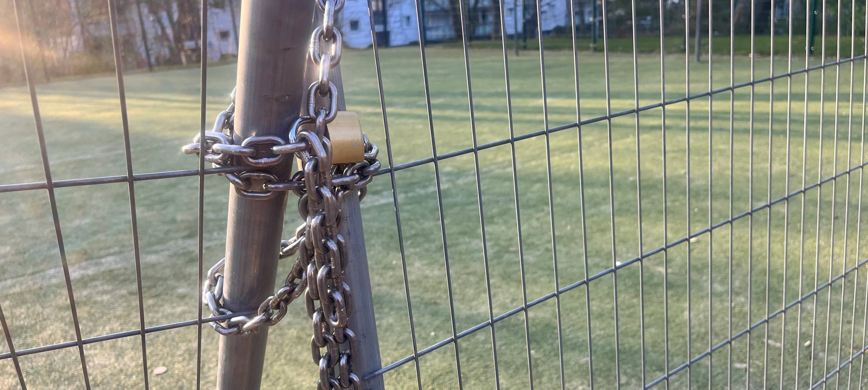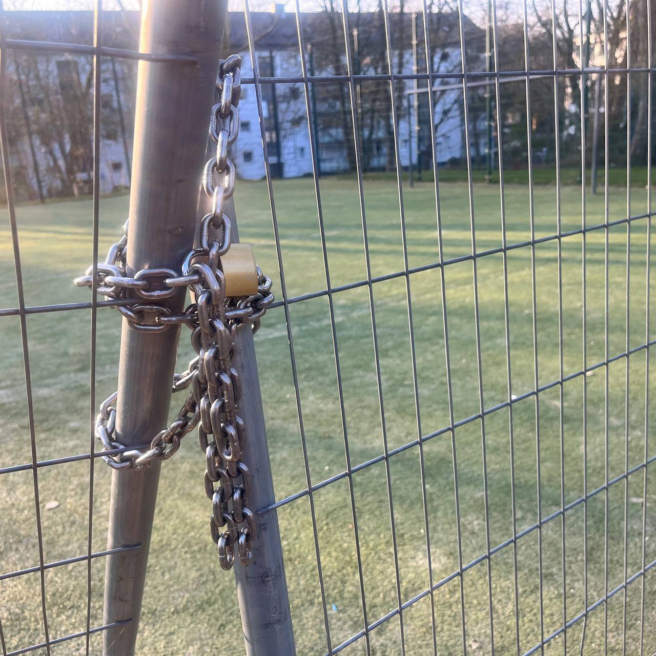 Der Platz in Essen Rüttenscheid ist seit dem Sommer abgesperrt. Zuerst war nur Flatterband gespannt. Das hat keinen vom Fußballspielen abgehalten. Dann wurden Zäune mit Eisenketten und Schlössern angebracht. Auch das hält keinen ab. Die Jugendlichen aus der Nachbarschaft rücken mit Bolzenschneidern an und kappen die Ketten. In der Woche spielen meist Kinder hier. Am Wochenende gehen Jugendliche und Erwachsene zum kleinen Bolzplatz. Der Kunstrasenplatz ist an mehreren Stellen richtig kaputt. Obwohl auf dem Bolzplatz Kunstrasen liegt, ist Grün und Gruga für den Belag und den Zaun zuständig. Dort ist das Problem längst bekannt. Ende des Jahres 2025 soll neuer Kunstrasen verlegt werden, sagt eine Sprecherin von Grün und Gruga. Bis dahin bleibt der Zaun, um den Bolzplatz stehen.