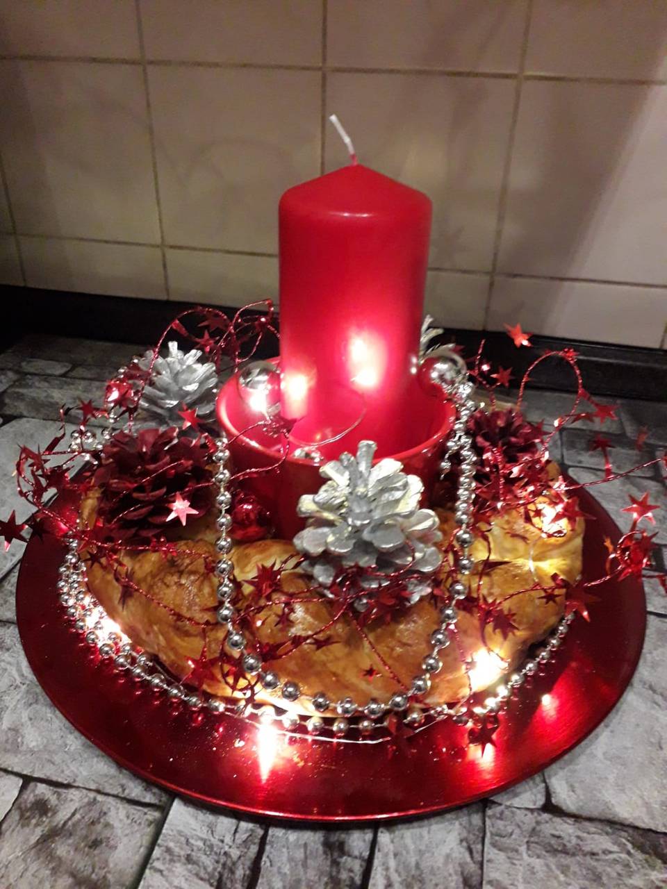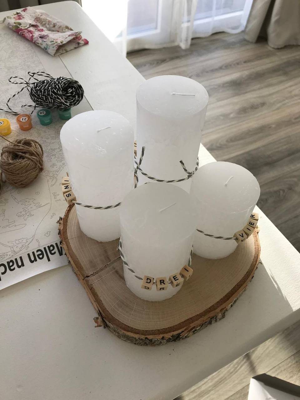Adventskränze müssen längst nicht mehr unbedingt rund sein. Das wichtigste sind doch die vier Kerzen, die uns anzeigen, wie lange es noch bis Weihnachten dauert. Daher nennt Larisse Schmitz ihren Adventskranz "Adventsstange". Vier Kerzen nebeneinander drapiert auf einer Servierplatte, etwas weihnachtliche Tannenzweige (wer's mag, färbt sie ein), Deko-Sternchen, Weihnachtskugeln und ein paar Tannenzapfen und fertig ist die etwas andere "Adventsstange".