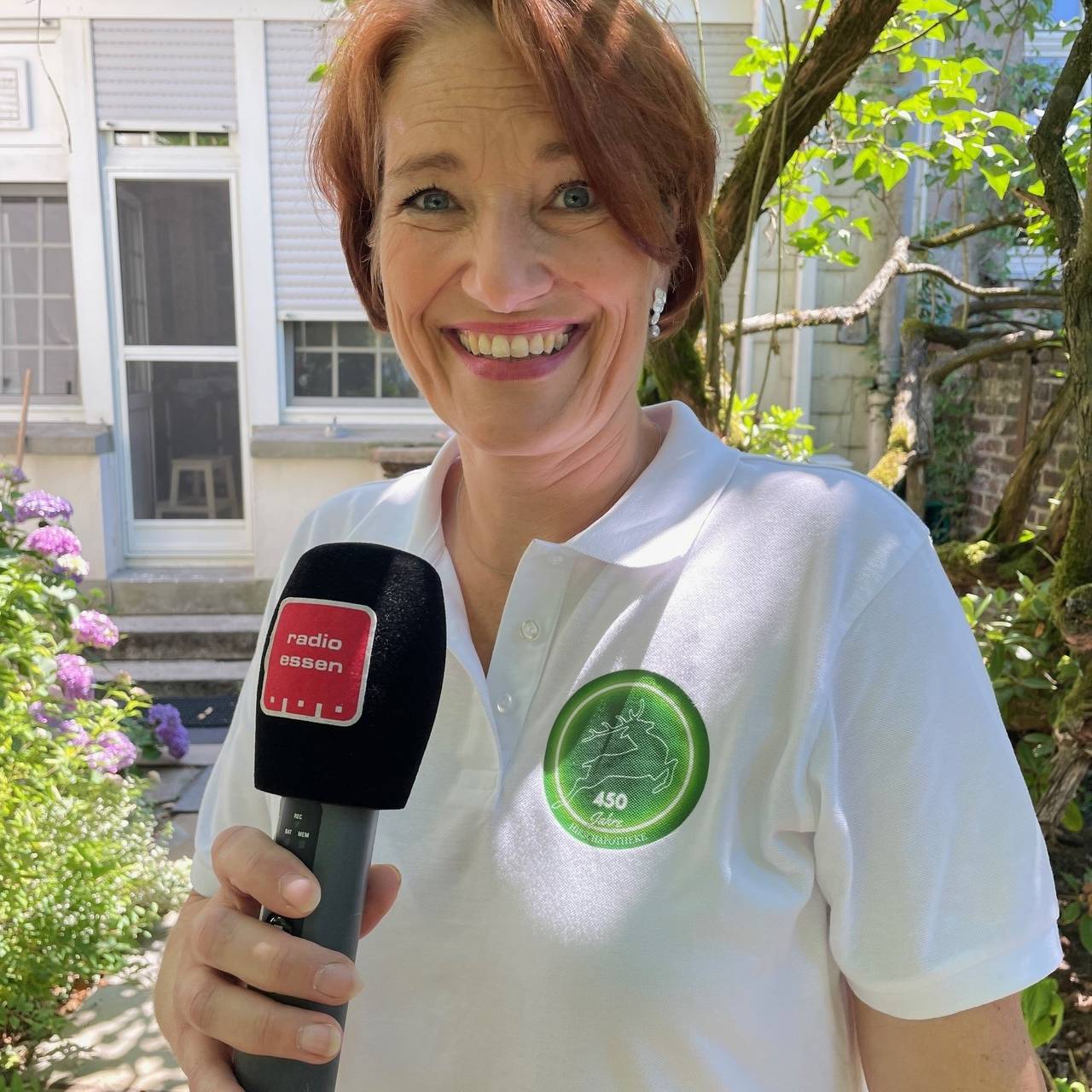 Anke Hemmerle-Kock empfängt Radio Essen-Stadtreporter Timm Schröder an der über 200 Jahre alten Tür ihrer Apotheke. Auch heute nutzt sie die kreisrunde Luke der Tür im Notfalldienst. Während der normalen Öffnungszeiten steht die Tür aber offen, und die Kunden kommen über einen kleinen Vorraum in die Apotheke. Obwohl es das älteste eingetragene Unternehmen in Essen ist, ist in die Apotheke längst modernste Technik eingezogen. Künstliche Intelligenz sortiert dabei rund 11.000 Medikamente in verschiedene Fächer ein und optimiert die Lagerung 24 Stunden am Tag.