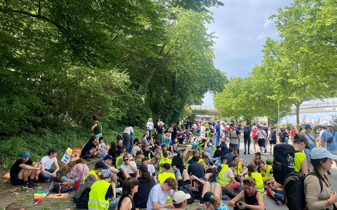 07:44 Uhr: Die Demonstranten selbst rufen von einem Lautersprecherwagen aus "Lasst uns versuchen friedlich zu bleiben". An den meisten Orten ist es das bisher auch geblieben, nur an der Ecke an der A52-Ausfahrt ist es etwas chaotischer.