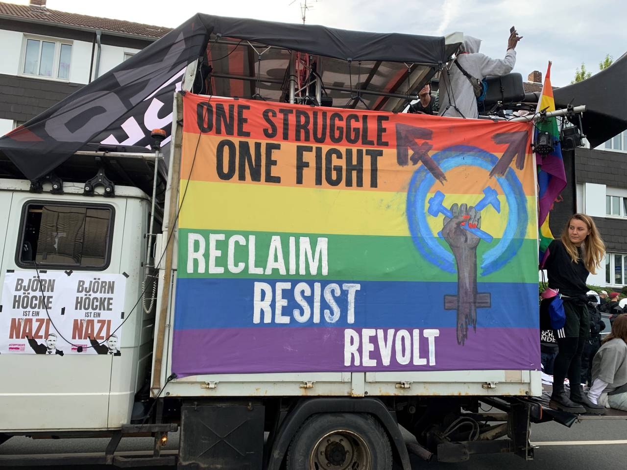 19:03 Uhr: Die ersten Teilnehmerinnen und Teilnehmer versammeln sich am Hauptbahnhof zur Demo. Der Truck ist bunt bemalt. Auch von einzelnen Parteien haben sich einige auf den Weg zur Demo gemacht.
