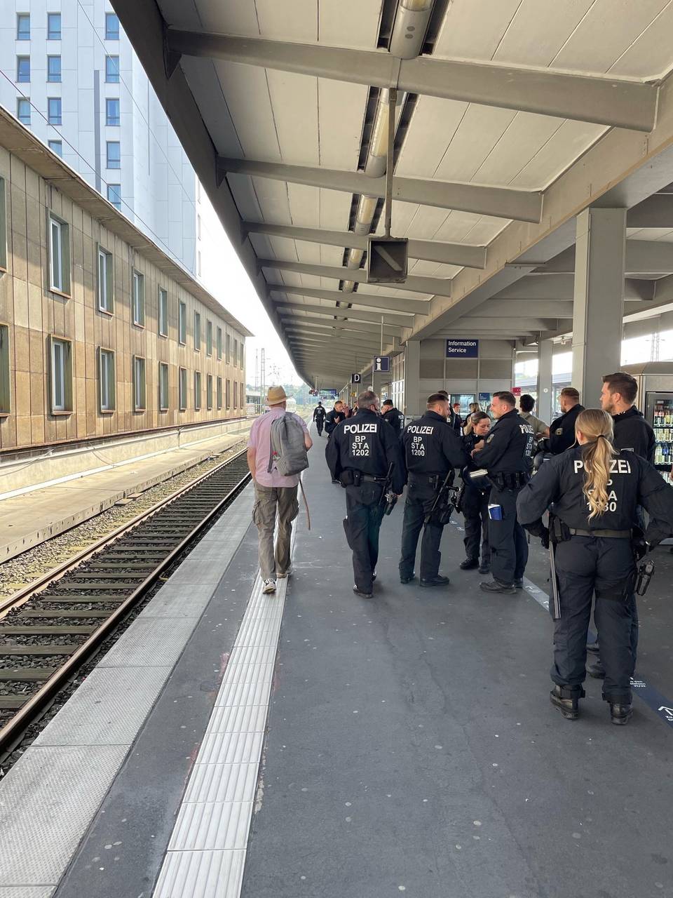 10:10 Uhr: Am Hauptbahnhof wird es etwas leerer. Die meisten Demonstranten haben sich dem Demozug angeschlossen, der dort ab 10 Uhr gestartet ist. Aus dem Zug, der am Bahnsteig 1 ankommen sollte, sind keine AfD-Politiker ausgestiegen, sagt unser Radio Essen-Stadtreporter.