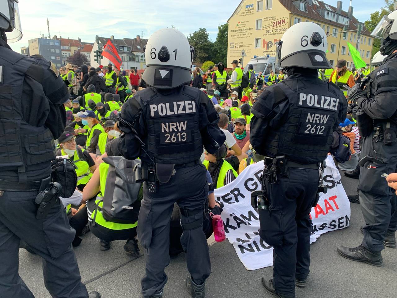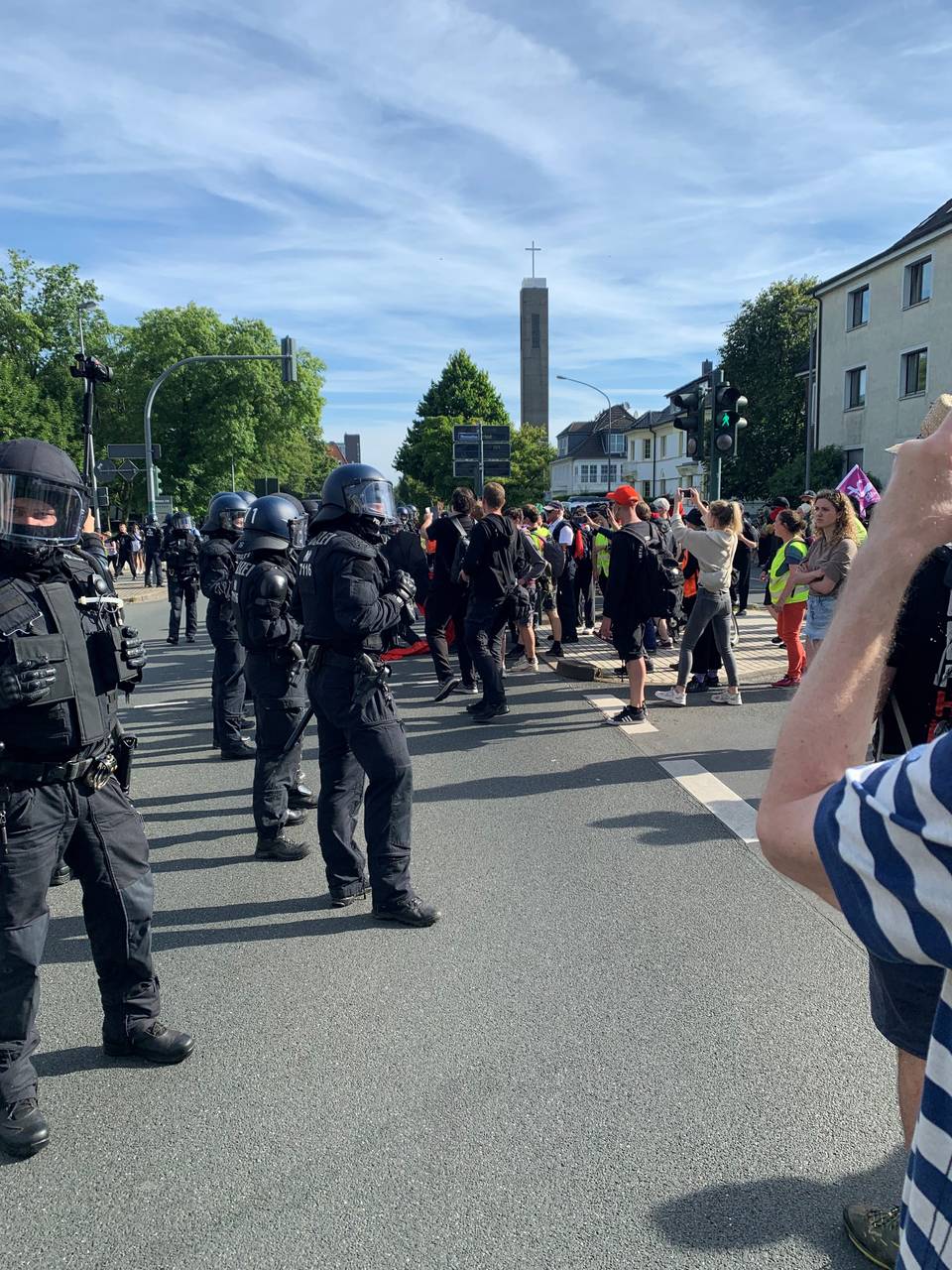 14:12 Uhr: Die Polizei hat inzwischen eine erste Bilanz der Auseinandersetzungen vom Vormittag gezogen. Einige Polizisten wurden dabei leicht verletzt. Eine genaue Zahl nennt die Polizei aber noch nicht. NRW-Innenminister Herbert Reul verurteilt die Angriffe auf die Polizistinnen und Polizisten.