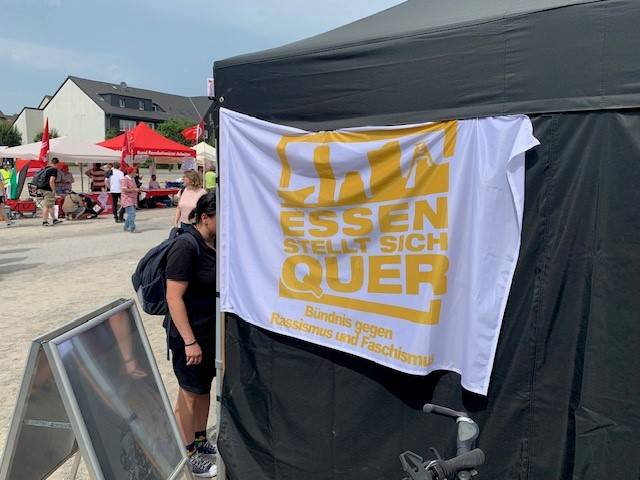 16:26 Uhr: Auf der Bühne auf dem Messeparkplatz werden viele Themen angesprochen, gerade haben "essen diese" über Jugend und Kultur gesprochen. die Rednerinnen und Redner bekommen viel Applaus für ihre Aussagen. Es ist aber ein ständiges Kommen und Gehen auf dem Platz. Es ist weiter nicht zu voll. Alle können sich frei bewegen.