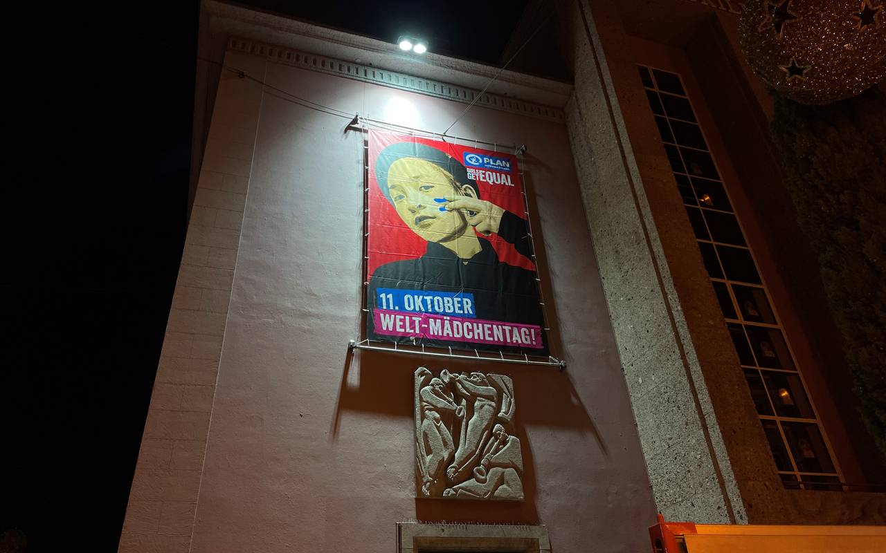 Aktionen in Essen zum Welt-Mädchentag: Pinke Beleuchtung und Banner