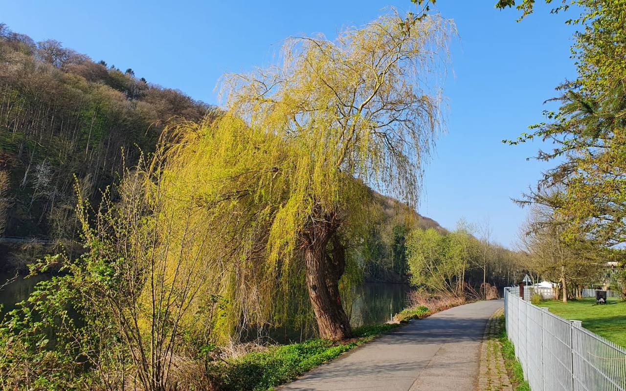 Die Trauerweide am Leinpfad in Essen-Kettwig bleibt vorerst erhalten. Zuletzt hatten sich immer mehr Essener:innen dafür eingesetzt. Die Weide ist aber eigentlich teilweise marode und krank.