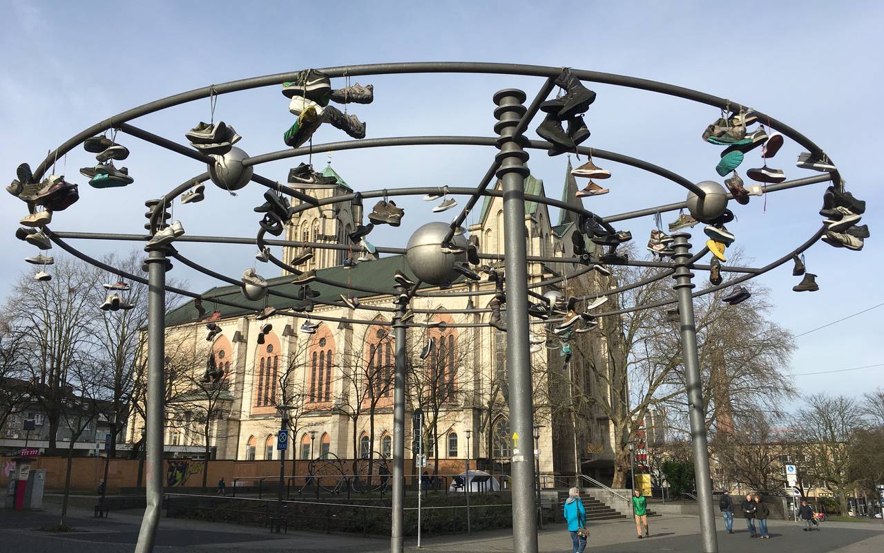 Am Pferdemarkt in Essen baumeln alte Schuhe