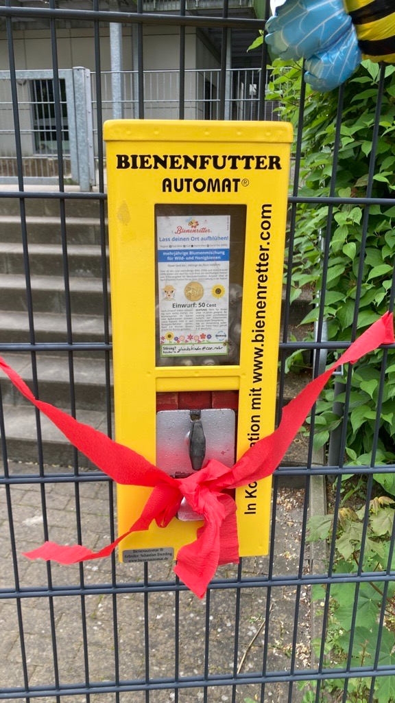 Bei uns in Essen gibt es einen neuen Futterautomaten für Bienen. Darin sind Kapseln mit Blumensamen. Wie Ihr damit den Bienen helfen könnt, lest Ihr hier.