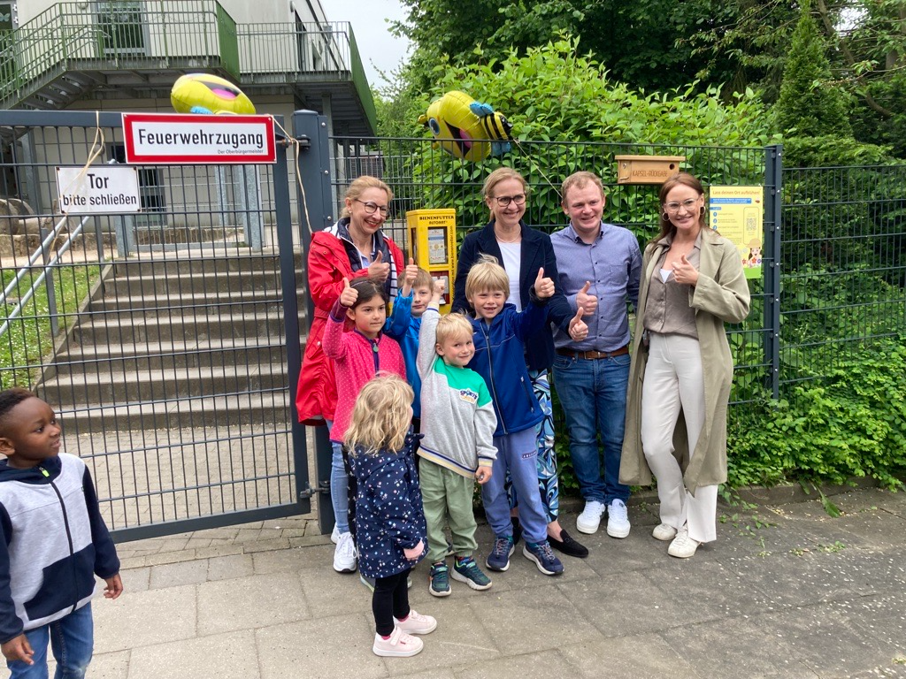In Essen-Horst ist ein alter Kaugummi-Automat upgecycelt worden. Statt Kaugummis gibt in dem Automaten beim Familienzentrum der Caritas jetzt Bienenfutter-Kapseln mit Blumensamen. Aus den Samen wachsen später Blumen, die den Bienen besonders gut gefallen. Ihr könnt vorbei gehen und Euch solche Kapseln holen, um den Bienen zu helfen. Denn die Samen könnt Ihr ganz einfach zuhause im Garten oder auf dem Balkon anpflanzen. Mit dem neuen Automaten gibt es nun schon insgesamt neun Bienenfutterspender vor Kitas in Essen.
