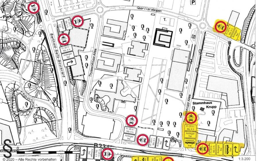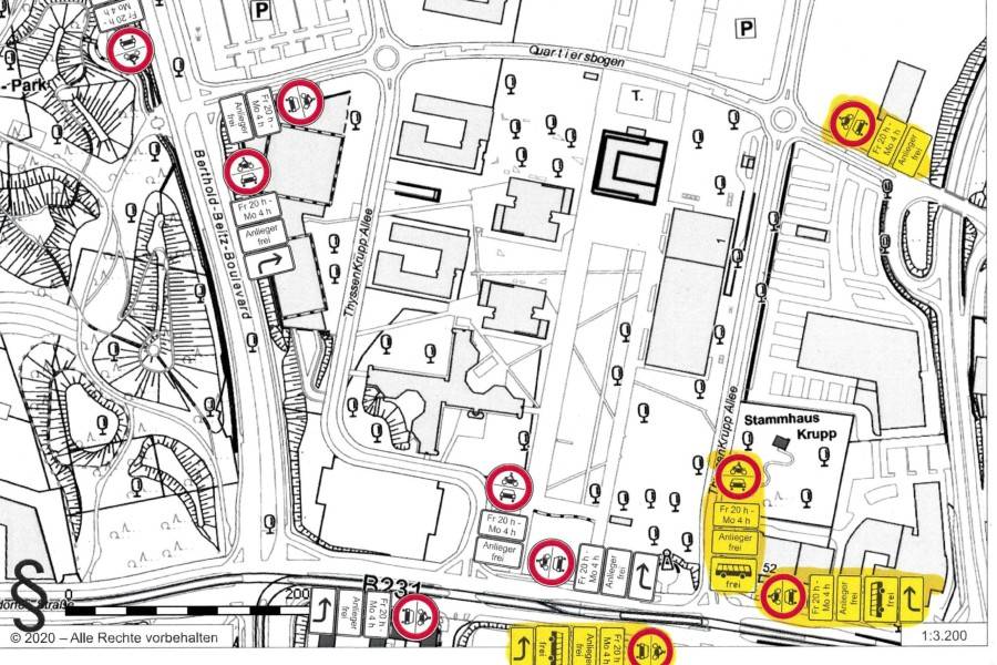 Im Thyssenkrupp-Quartier im Westviertel gibt es bereits seit Monaten ein Durchfahrtsverbot. Dort dürfen Autofahrerinnen und Autofahrer am Wochenende nicht von der Altendorfer Straße, dem Berthold-Beitz-Boulevard und dem Quartiersbogen auf die Thyssenkrupp-Allee fahren. Dieses Durchfahrtsverbot wird nun ausgedehnt. Der Grund dafür sind Probleme mit der Auto-Poser-Szene. Sie trifft sich dort, hört laute Musik und lässt ihren Müll liegen. Das Ordnungsamt hat nun gemerkt, dass sich die Szene auf den östlichen Bereich der Thyssenkrupp-Allee verschoben hat. Deshalb wird ab sofort auch der Bereich zwischen der Altendorfer Straße und dem Kreisverkehr Quartiersbogen gesperrt. Nur noch Anlieger kommen dort durch. Die Durchfahrtssperren gelten immer von freitags 20 Uhr bis montags 4 Uhr.