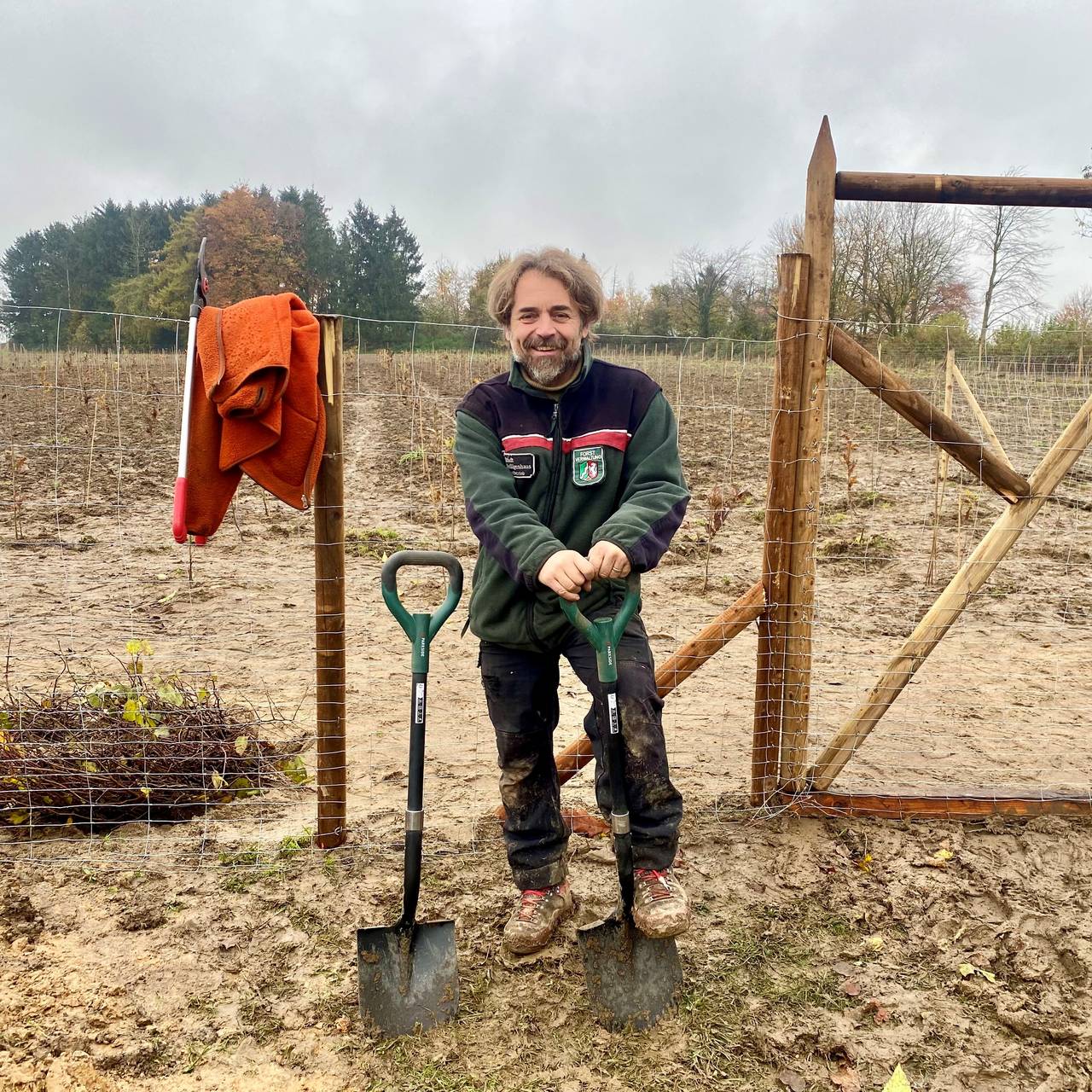 Die neuen Bäume werden auch in 100 Jahren an der Grenze zu Essen stehen. Förster Hannes Johannsen hat sie zusammen mit den Azubis ausgesucht und Sorten gewählt, die sehr gut mit unserem Klima zurechtkommen. Der Förster aus Heiligenhaus war von den Azubis aus Essen schwer begeistert.