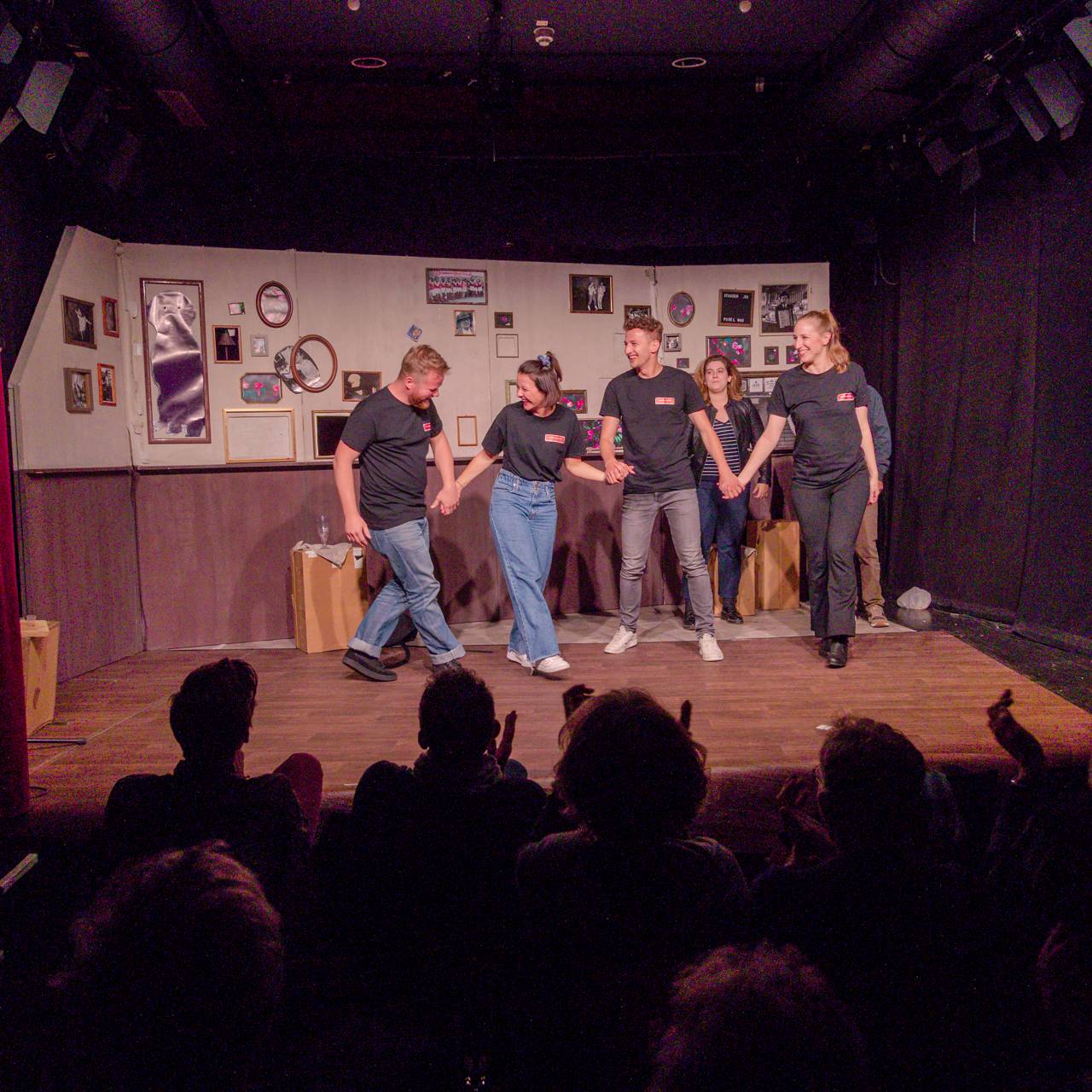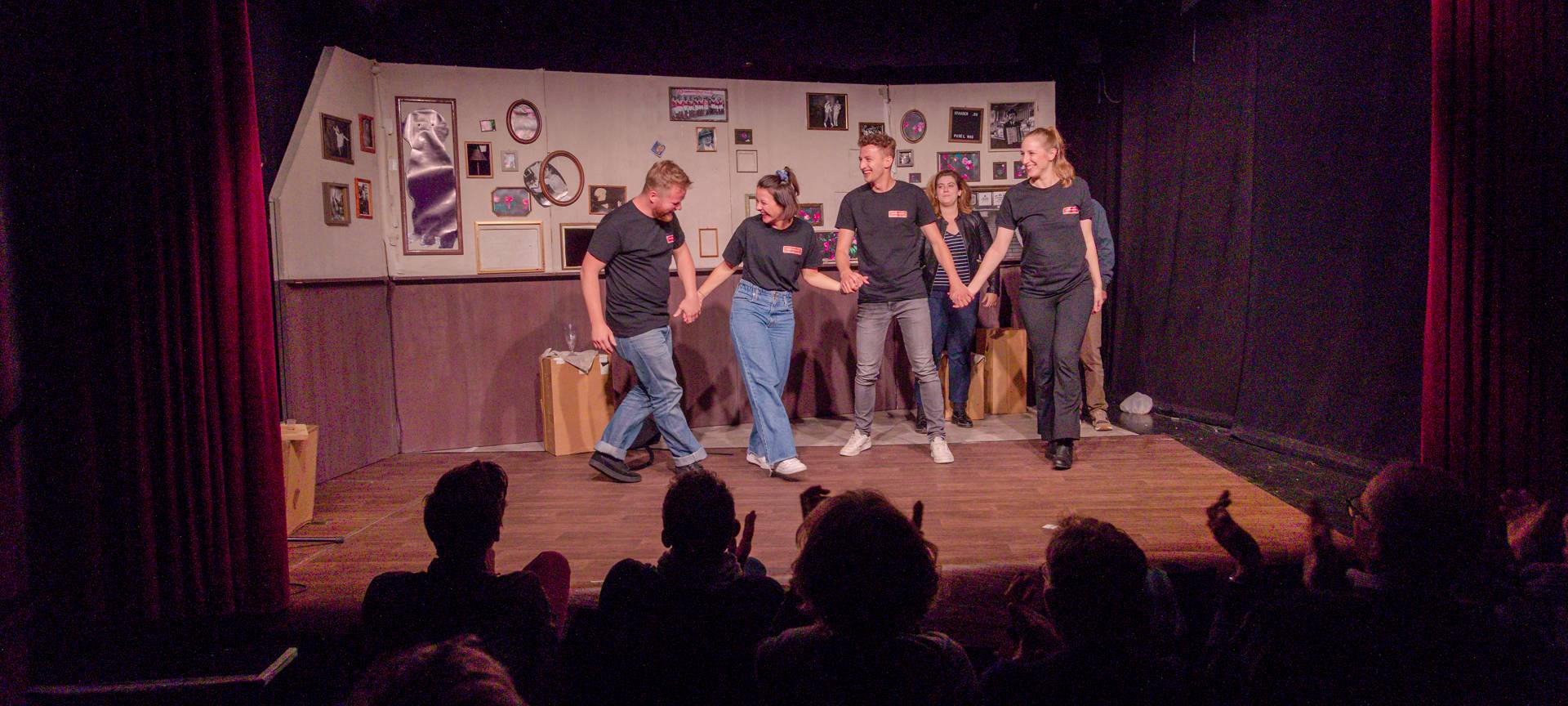 Den gab es dann auch für die beiden Jungs der Frühschicht. "Assis mit Herz" lautete das Motto, zu welchem Fabian und Joshua einen Rot-Weiss Essen Fangesang durch den Saal schallen ließen. Am Ende gab es dann sehr viel Beifall für alle Schauspieler, egal ob Profis oder Anfänger. Stellvertretend für alle bedankte sich Larissa noch dafür, dass Radio Essen ein Teil der "Back2live"-Kampagne sein durfte. Alle beteiligten waren froh und glücklich, endlich wieder einen vollen Theatersaal erleben zu dürfen.