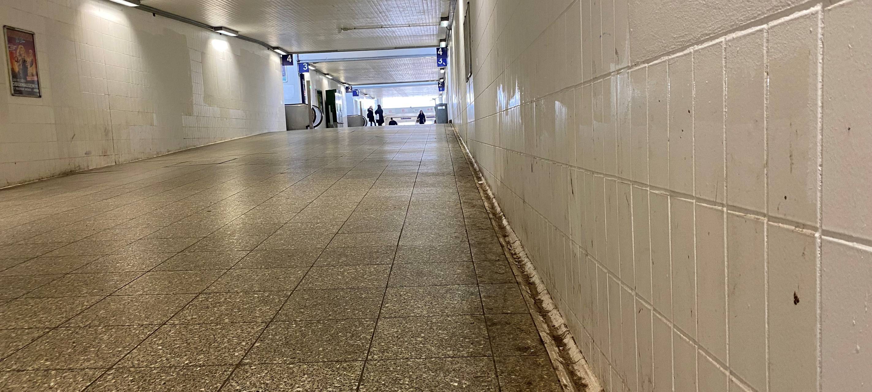 U-Bahn-Station in Essen: Kaputte Fliesen, Dreck, lose Kabel und Taubenkot