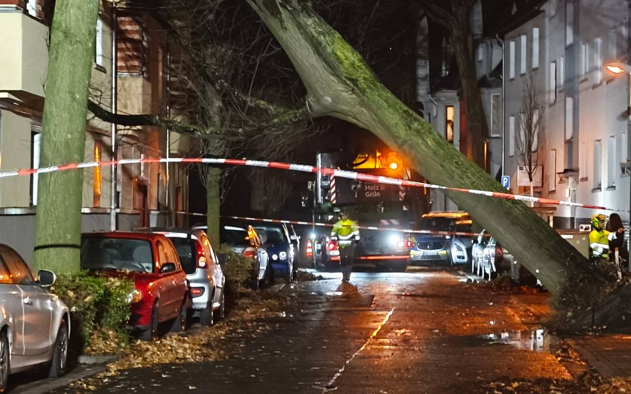 In Essen ist ein Baum in Frohnhausen auf ein Mehrfamilienhaus auf der Hurtestraße gestürzt. Vermutlich wurde der Baum wegen starker Windböen aus dem Boden gerissen. Die Straße ist deshalb vorübergehend gesperrt.