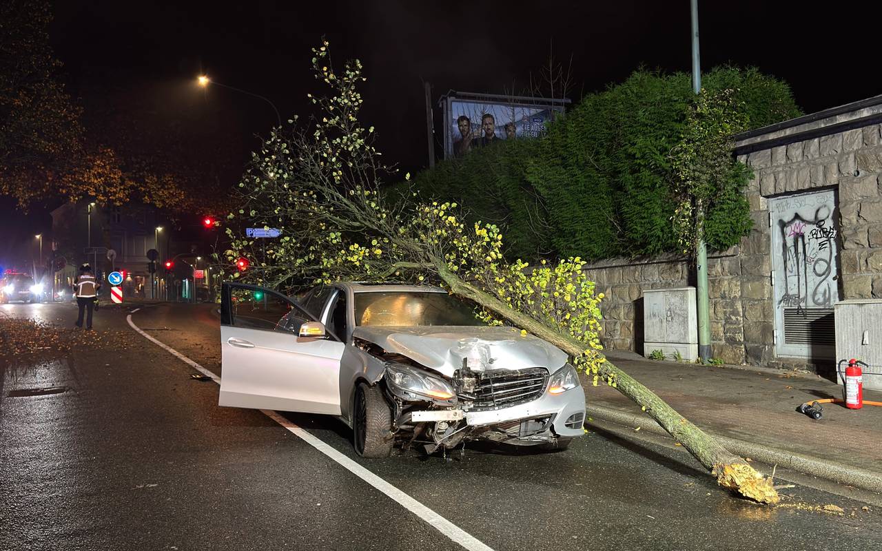 Am Samstagabend (15. November) hat es einen Unfall zwischen einem Auto und einem Baum gegeben. Der Autofahrer ist gegen den Baum gefahren und hat ihn auf der Motorhaube mitgenommen.