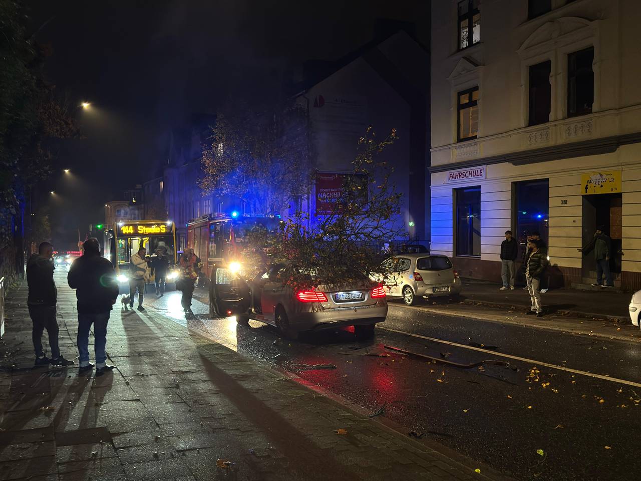 Auf der Krayer Straße gab es am Samstagabend (15. November) etwas nicht alltägliches zu sehen. Ein Auto hat einen Baum auf der Motorhaube mitgenommen. Laut Polizei stand der Baum am rechten Fahrbahnrand. Der Autofahrer ist gegen den Baum gefahren, der Baum ist umgekippt und auf der Motorhaube gelandet. Das Auto ist samt Baum noch ein paar Meter weiter gefahren und dann auf der Gegenfahrbahn zum stehen gekommen. Der Unfall hat einige Schaulustige auf die Straße gelockt. Außerdem konnte der Bus wegen des Unfalls nicht weiterfahren. Warum der Autofahrer den Baum mitgenommen hat, kann die Polizei noch nicht sagen. Fahrer und Beifahrer wurden leicht verletzt.
