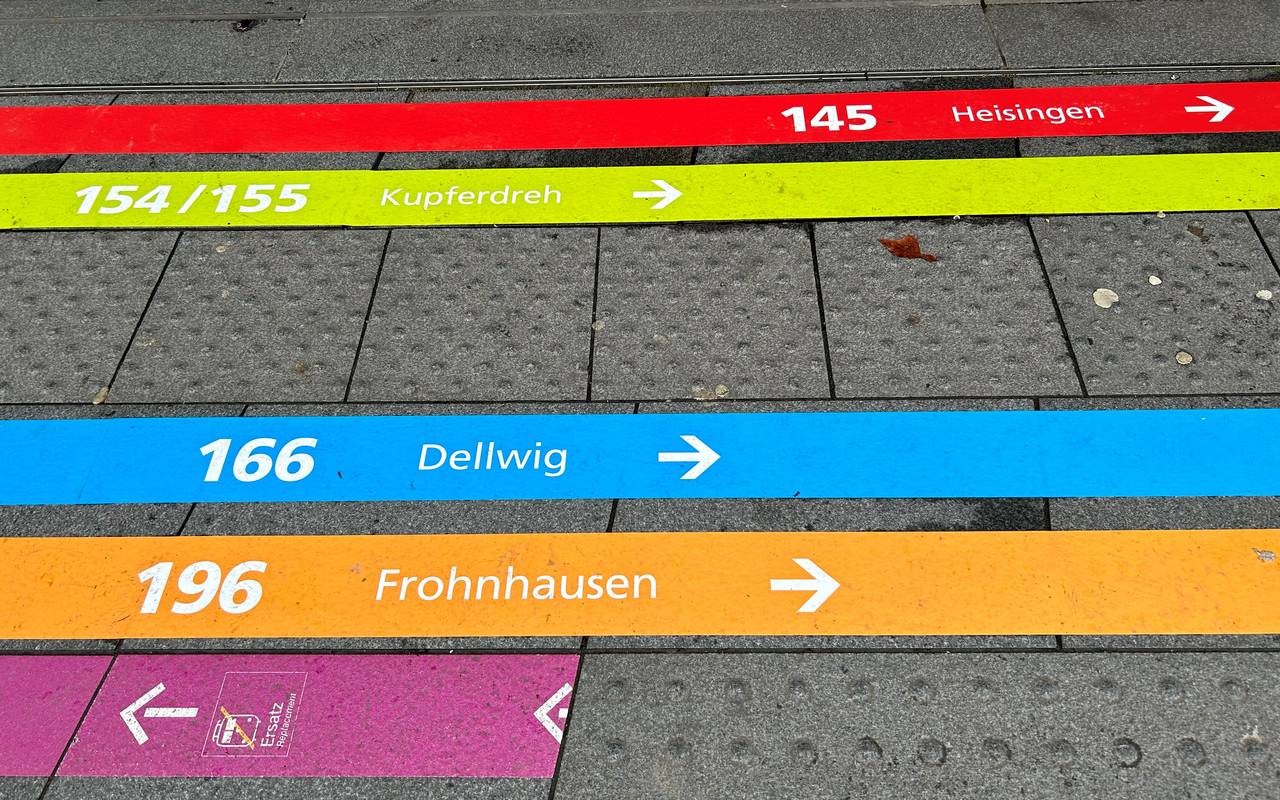 Am Hauptbahnhof in Essen startet der Bau der neuen City-Straßenbahn jetzt offiziell. Deshalb ist es da aktuell sehr bunt und es müssen einige Einschränkungen in Kauf genommen werden. Auf dem Pflaster kleben zum Beispiel bunte Streifen. Die Markeirungen sollen die Fahrgäste der Ruhrbahn zu den neuen Haltestellen der Busse lenken. Einige Buslinien fahren nämlich ab sofort (08.01.) einen anderen Weg. Für die Bauarbeiten der neuen Straßenbahnlinie wird die Hollestraße ab sofort zu einer Einbahnstraße vom Hauptbahnhof in Richtung Steeler Straße. Die Busse, die vorher von der Steeler Straße in Richtung Hauptbahnhof gefahren und dort abgebogen sind, fahren Umwege. Deshalb gibt es auch neue Haltestellen unter anderem für die Linien 145, 146, 154, 155, 166 und 196 und weitere Schnell- und Nachtbusse. Die Busse, die vom Hauptbahnhof nach Norden in Richtung Rathaus oder Kray fahren, müssen den Weg nicht ändern.