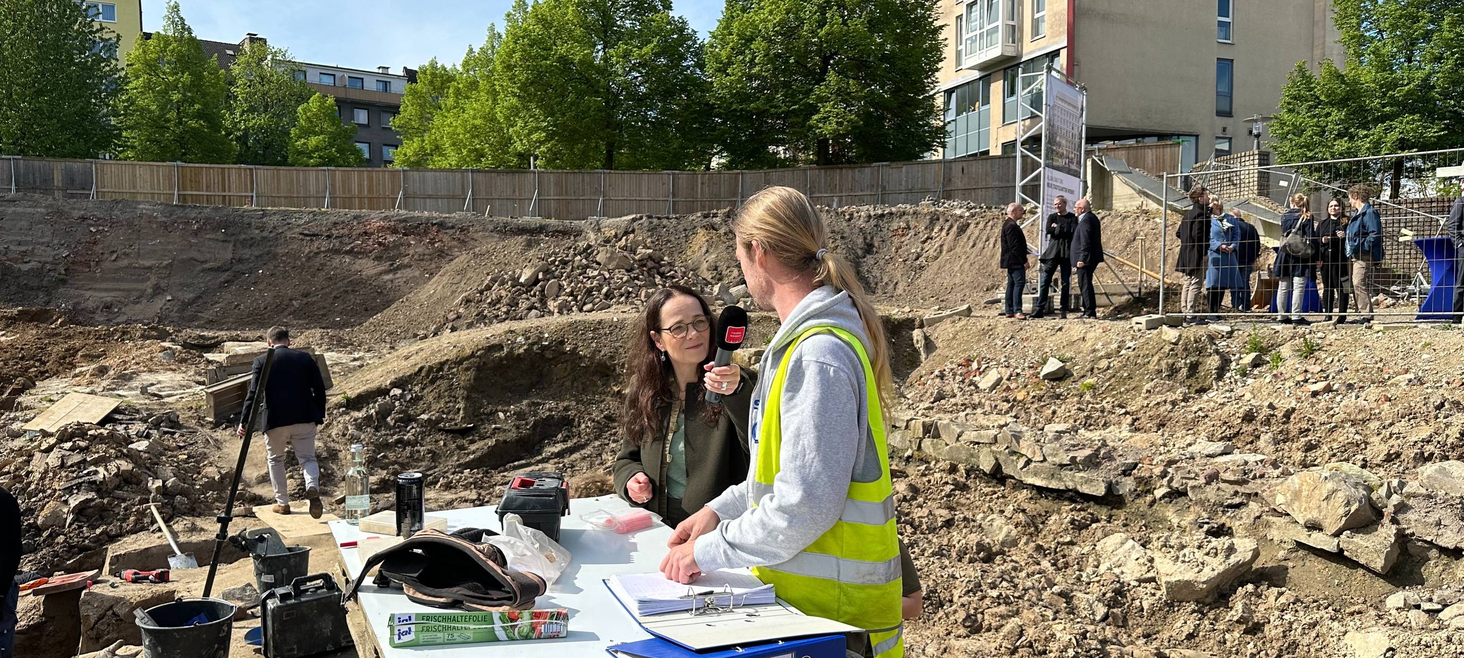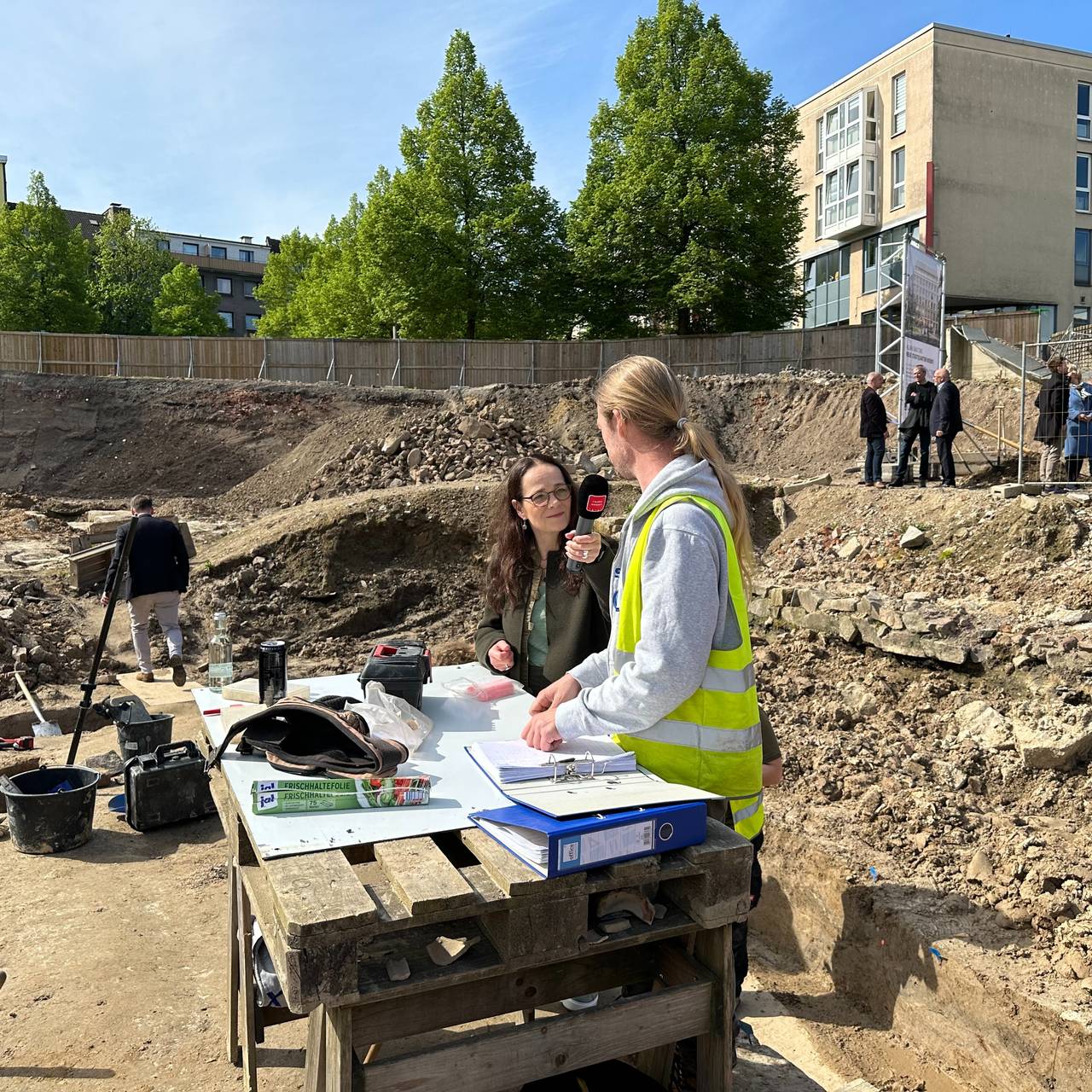 Am Weberplatz in Essen wurde ein sehr gut erhaltener Holzsarg gefunden. Dort wird aktuell unter anderem ein neues Standesamt gebaut. Der Sarg liegt auf dem ehemaligen Friedhof unter dem Weberplatz. Im Mittelalter und in den Jahrhunderten danach war es üblich, dass die Friedhöfe innerhalb der Stadtmauern waren, erklärt der Stadtarchäologe Dr. Sebastian Senczek auf Radio Essen-Nachfrage. Meist ist das Holz aber schon verwittert und kaum noch erhalten. In diesem Fall hat aber scheinbar der saure Boden und eine Wasserstelle dafür gesorgt, dass der Sarg fast komplett erhalten geblieben ist. Das ist eine echte Seltenheit und begeistert den Archäologen Roland Lavelle von der Dortmunder Firma EggensteinExca GmbH im Interview mit Radio Essen-Moderatorin Anna Bartl.