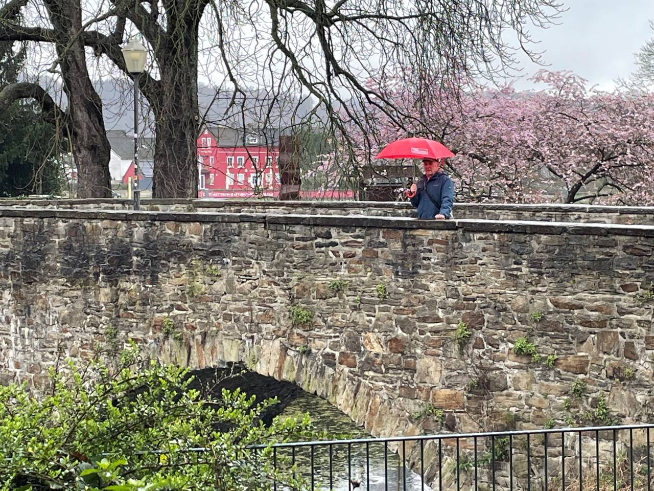 Wir treffen Peter Bankmann unterhalb der historischen Altstadt von Essen-Kettwig. Hier ist die 1785 erbaute Steinbogenbrücke über den Mühlengraben. Sie ist die älteste erhaltene Brücke an der 219 Kilometer langen Ruhr. Aber auch schon vorher gab es in Kettwig einen Ruhrübergang. Bis 1930 mussten die Nutzer sogar eine Zollgebühr bezahlen. Am Ende des Zweiten Weltkrieges wurde sogar der südliche Teil der Ruhrbrücke gesprengt, um den Vormarsch der Amerikaner auszubremsen. Ab 1950 konnten hier dann auch wieder Autos von der einen Seite zur anderen Seite der Ruhr fahren.