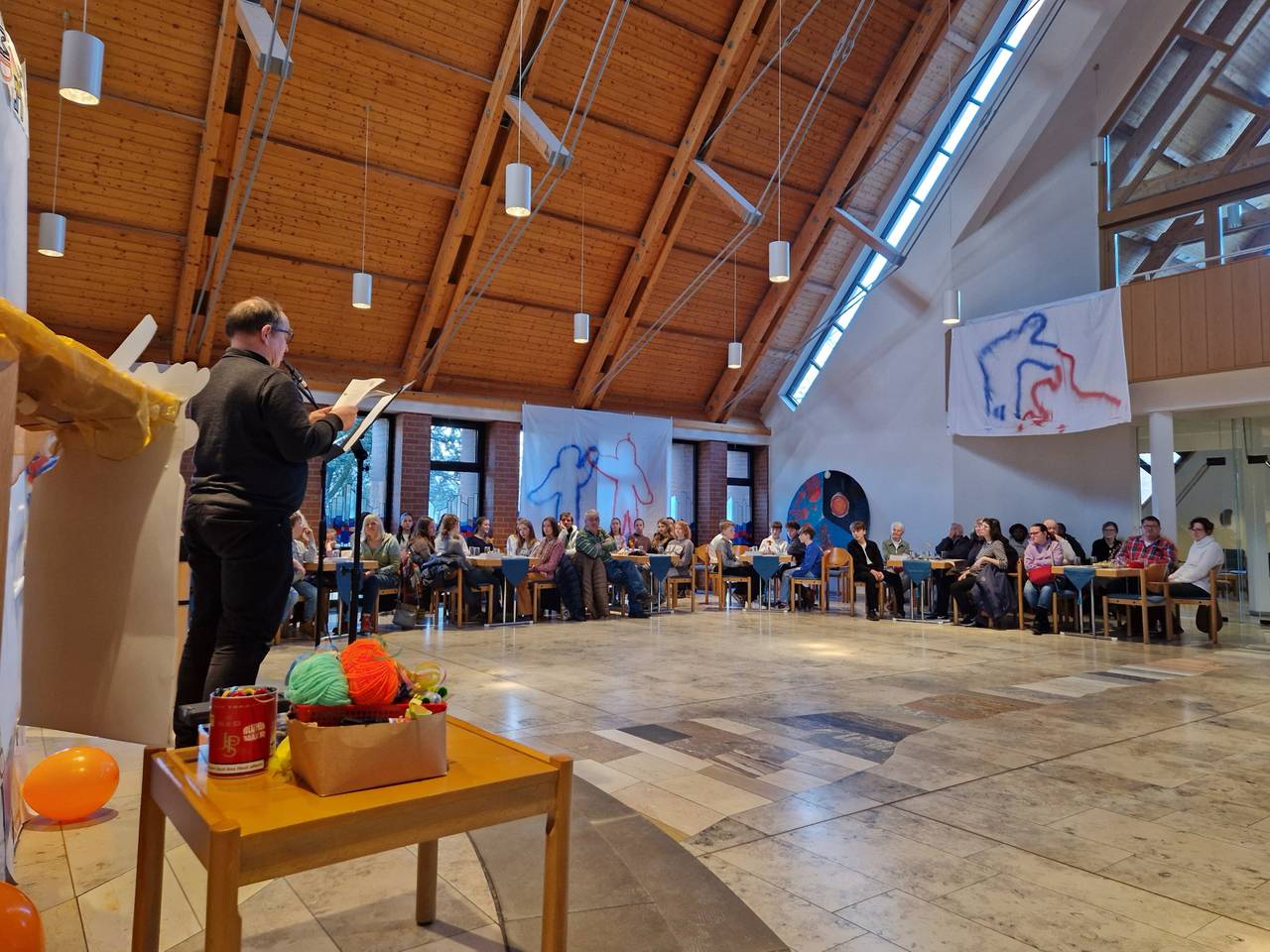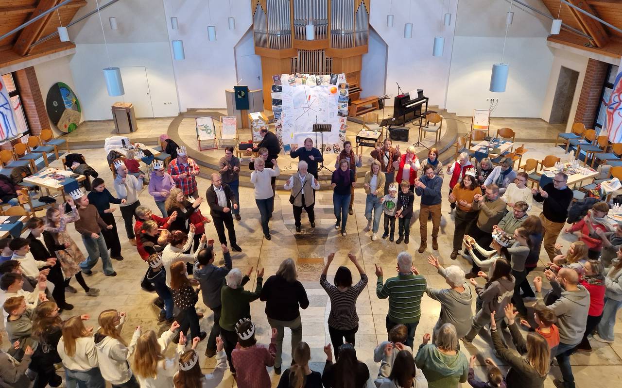 Bei "Kreuz und quer" darf jede und jeder ihr oder sein besonderes Talent mit einbringen. Es gibt eine Band, aber auch Menschen, die lieber tanzen, malen, sich mit Bibeltexten auseinandersetzen, Menschen die gut fotografieren oder packende Rede halten können. Die einzelnen Ausgaben von "Kreuz und quer" sind genauso vielfältig wie die Gemeindemitglieder. In den vergangenen fünf Jahren sind dadurch viele Themen bearbeitet worden, die alle Menschen angehen: Angst, Freundschaft, Vertrauen oder Gemeinschaft zum Beispiel. Zum fünften Geburtstag wurde die Kirche in Bergerhausen nochmal neu gedacht: Die Tische und Stühle standen in Spiralform in der Kirche. Alle haben zusammengesessen. Es gab Kronen basteln, eine Schreibwerkstatt, eine Bibliothek aus den vergangenen fünf Jahren, es wurde getanzt und natürlich gab es auch eine Geburtstagstorte.