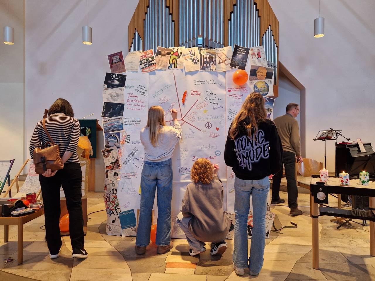 Anfang 2020 wollte die evangelische Kirchengemeinde Bergerhausen in Essen etwas Neues für ihre Gemeindemitglieder. Eine Möglichkeit, Gott so zu erfahren, wie es jedem einzelnen guttut. Ohne angestaubte Orgelklänge und Liturgien, die jeder kennt, aber junge Menschen eher weg von der Kirche treibt. Mit Workshops, singen, tanzen, lesen, beten, etc. Herausgekommen ist dabei das Gottesdienstformat "Kreuz und quer", das jeden Monat stattfindet, immer zu einem anderen Thema und sorgfältig von Ehrenamtlichen vorbereitet und durchgeführt wird.