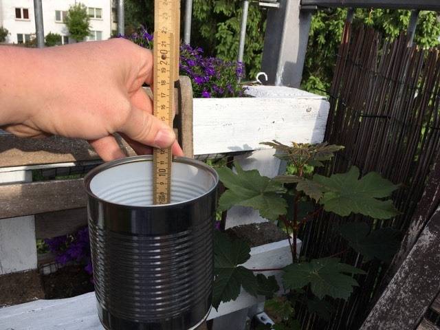 Jetzt die Dose ausmessen, damit die Bambusstäbe bündig in die Dose passen.
