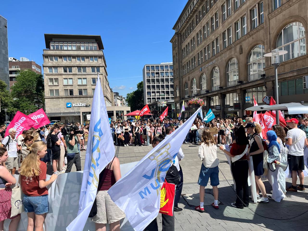 Die Demo in Essen ist Mittwoch (25. Juni) um 11.30 Uhr auf dem Willy-Brandt-Platz in der Innenstadt gestartet. Der Demonstrationszug ging zunächst ins Südviertel und dann nach Rüttenscheid, vorbei an mehreren Schulen. Am Mittag war die Abschlusskundgebung vor der Philharmonie. Etwa 500 Schülerinnen und Schüler haben allein in Essen gegen die Missstände im Bildungssystem protestiert. Sie fordern mehr Geld für Schulgebäude, mehr Personal an den Schulen, kleinere Klassen und weniger Leistungsdruck. Die Landesschülervertretung hält das aktuelle Schulsystem für ungerecht. Gymnasien, Realschulen und Hauptschulen sollten abgeschafft werden, stattdessen sollten alle in ganztägige Gesamtschulen gehen. Beim landesweiten Protesttag gingen Jugendliche in Essen, Düsseldorf, Gummersbach, Münster und Eitorf auf die Straßen.
