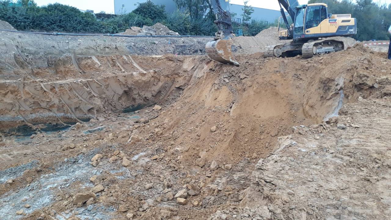 14:50 Uhr: Der Blindgänger in Kray muss vor der Entschärfung noch weiter freigeräumt werden.