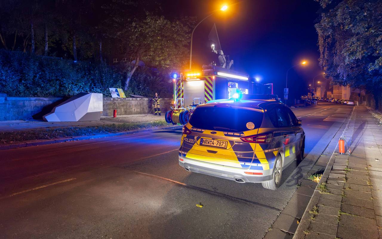 In der Nacht zu Montag (08. September) mussten Polizei und Feuerwehr Essen zu einem brennenden Blitzeranhänger ausrücken.