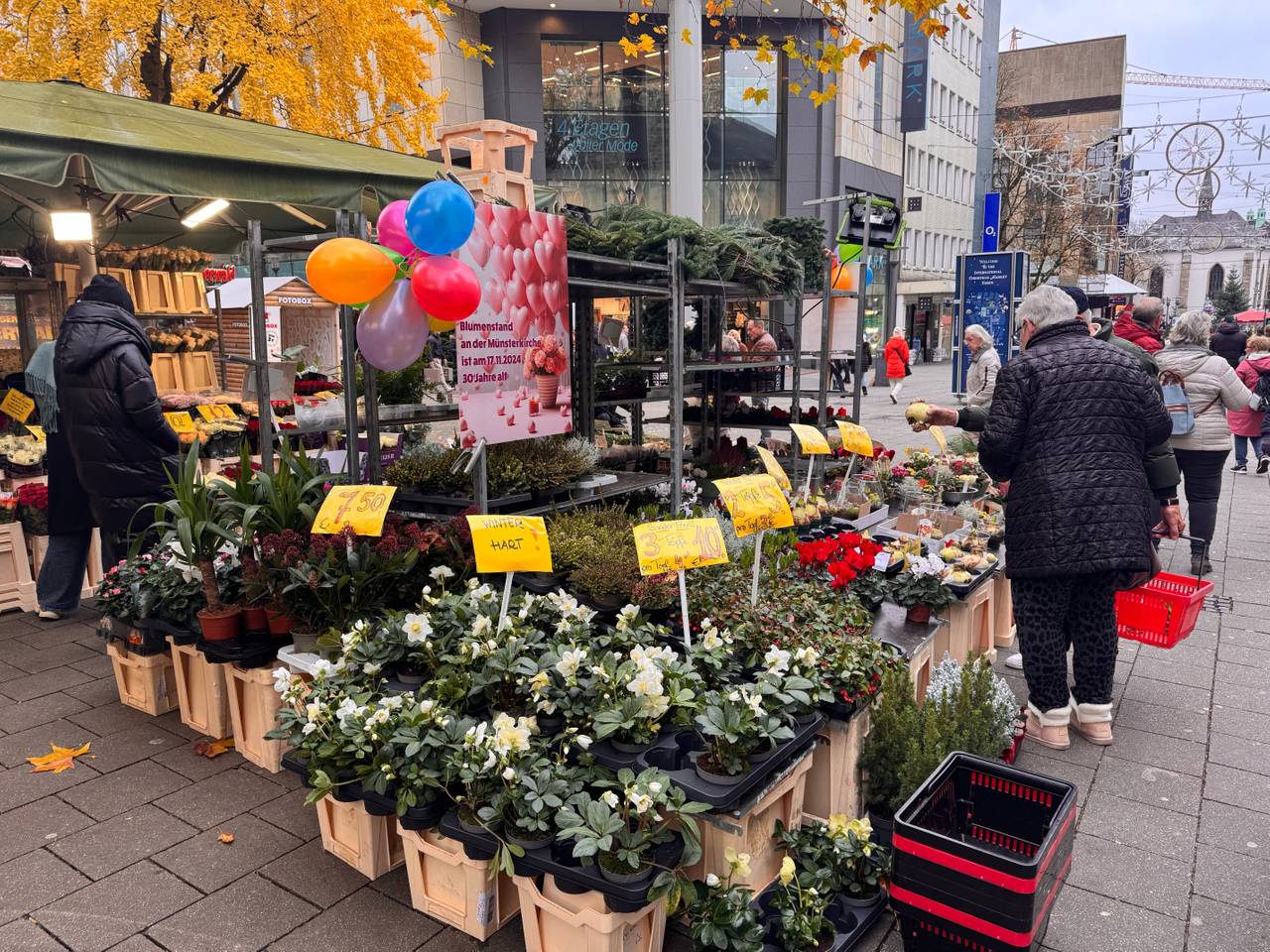Helma und Jan Hürenkamp führen seit 30 Jahren den Blumenstand am Dom in der Essener Innenstadt. Am Anfang stand ein Vertrag für einen Blumenstand zum Ostermarkt. Am 17. November 1994 wurde aus dem Stand dann ein fester Stand am Dom. Nachdem Helma und Jan vorher nur beim Ostermarkt ihre Blumen verkauften hatten und danach immer wieder auf andree Märkte gefahren sind, haben sie sich für den festen Stand am Dom entschieden.