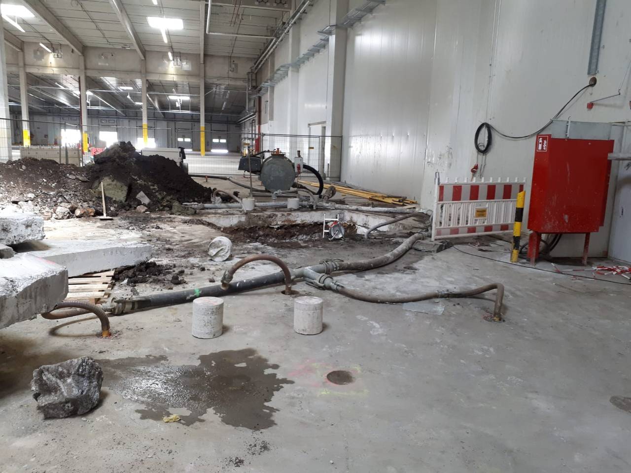 14:32 Uhr: Der Blindgänger liegt unter einer alten Lagerhalle. Um daran zu kommen, wurde ein Schacht gebohrt.
