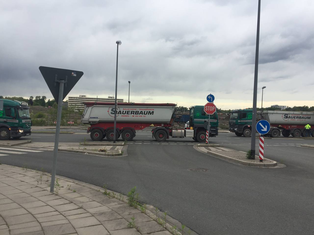 20:39 Uhr: Die Entschärfung kann sich noch lange hinziehen. Die Radlader haben nur kleine Schaufeln und es dauert, bis der Sand von den über 30 LKW runter geschaufelt ist. Aktuell sind an die 200 Einsatzkräfte insgesamt beteiligt.