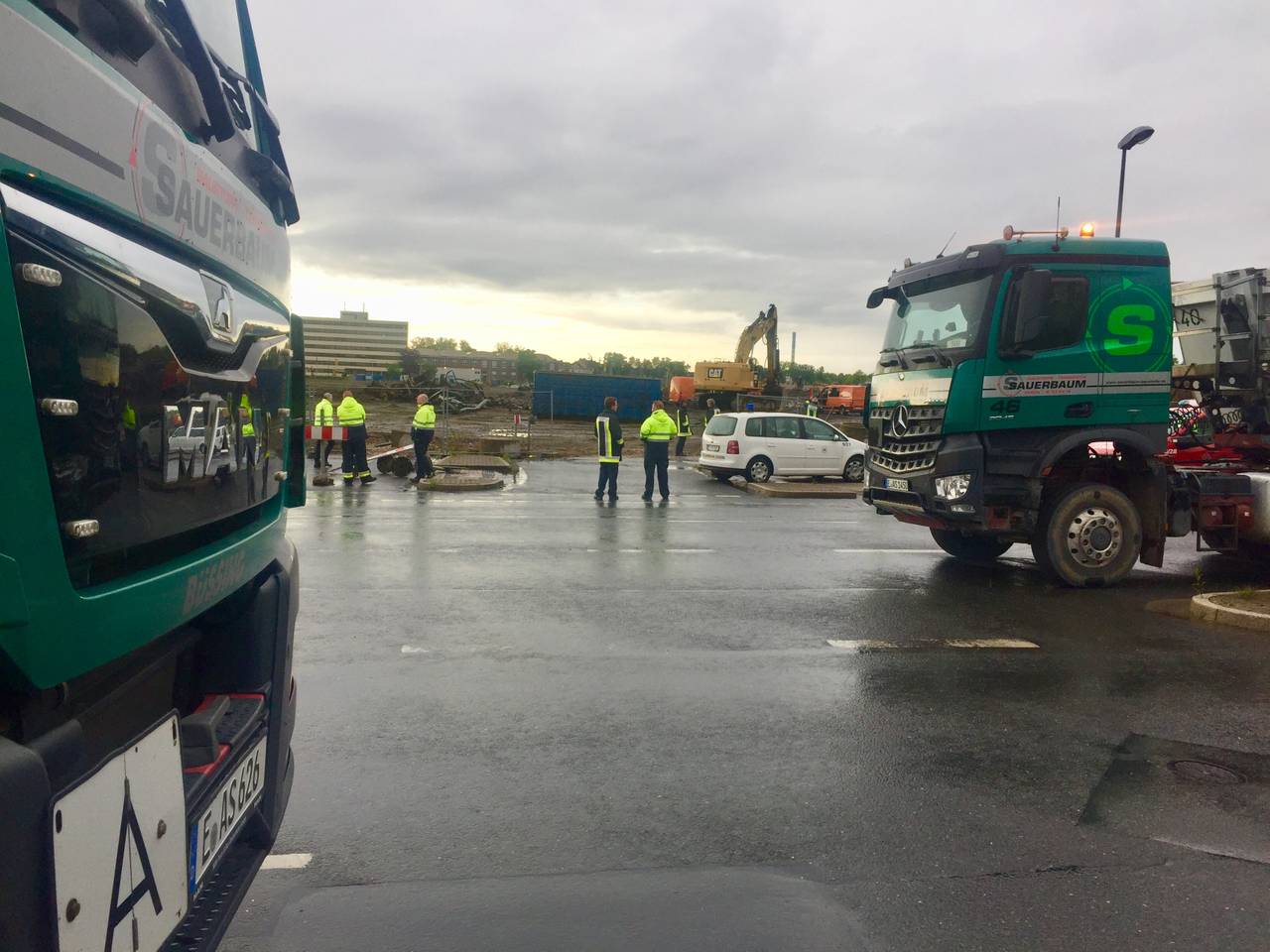 16:56 Uhr: Auf dem Baustellen-Gelände für den neuen Stadtteil Essen 51 wurde eine 10-Zentner-Bombe entdeckt. Sie liegt an der Ecke Pferdebahnstraße / Berhold-Beitz-Boulevard und muss heute noch entschäft werden.