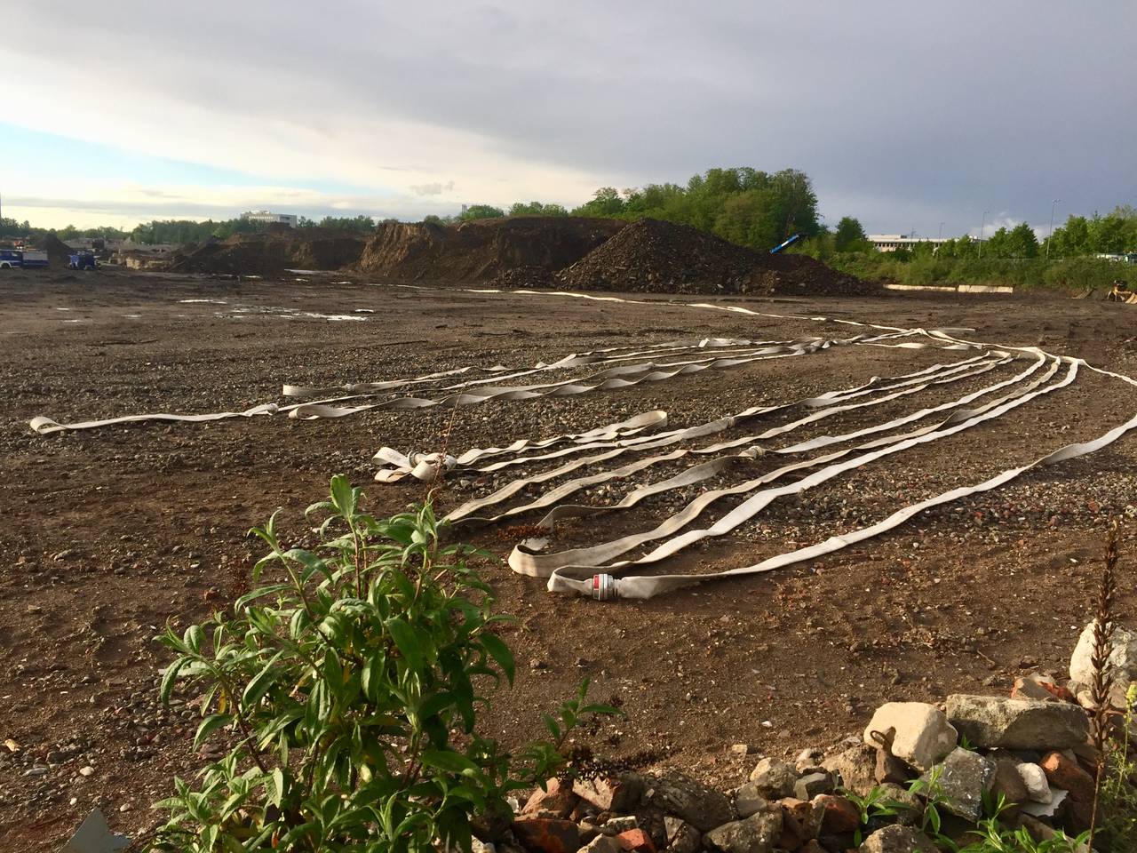 18:59 Uhr: Das Gelände bis zur Bombe ist sehr schlammig und weich. Es muss jetzt erst noch geprüft werden, ob die LKW mit dem Sand überhaupt bis zum Blindgänger fahren können und nicht stecken bleiben.