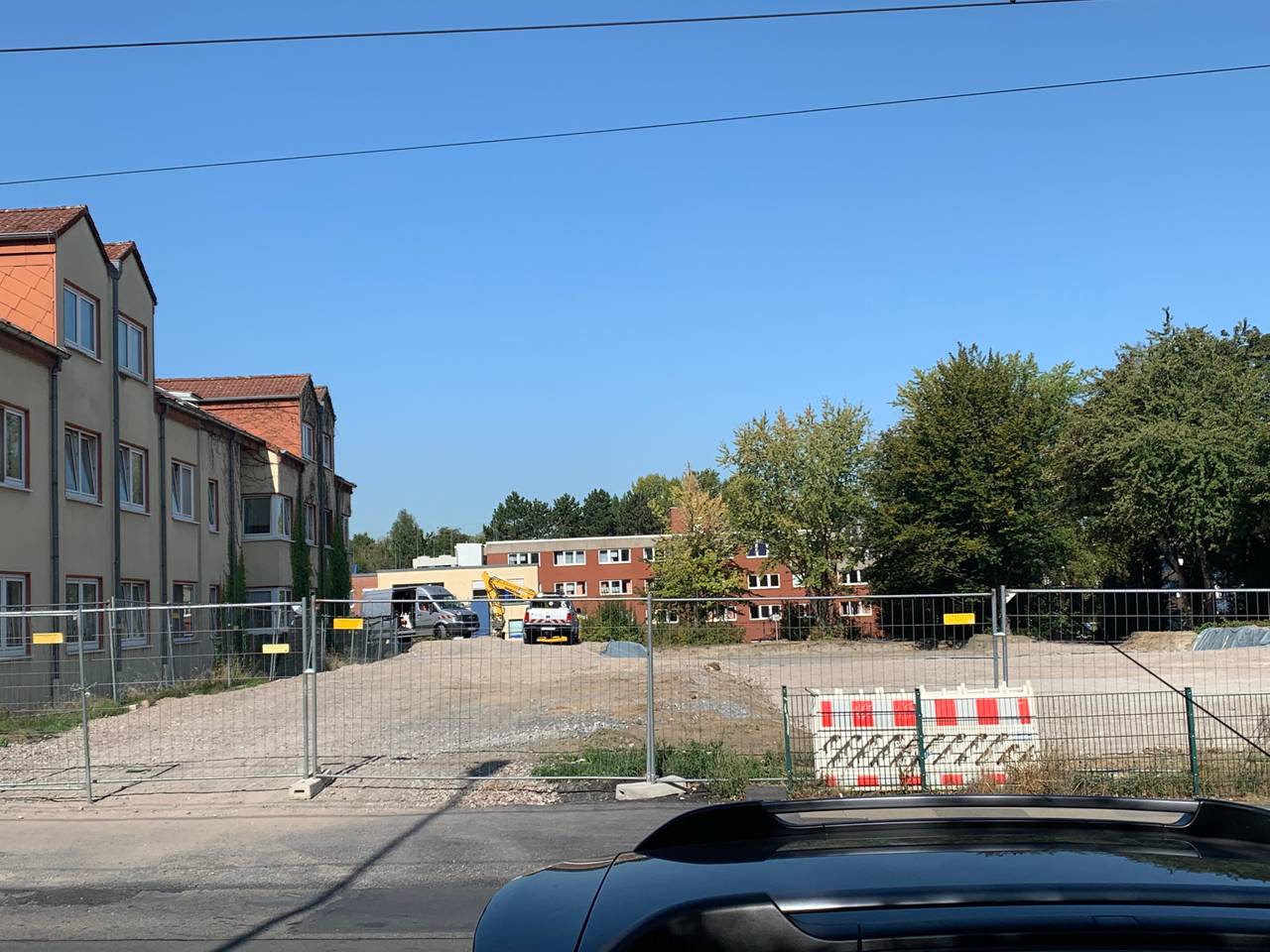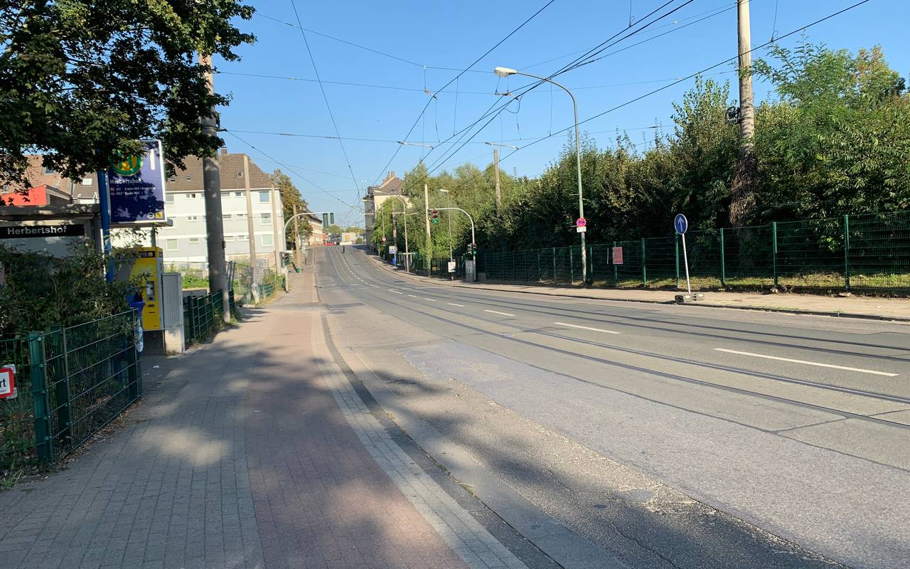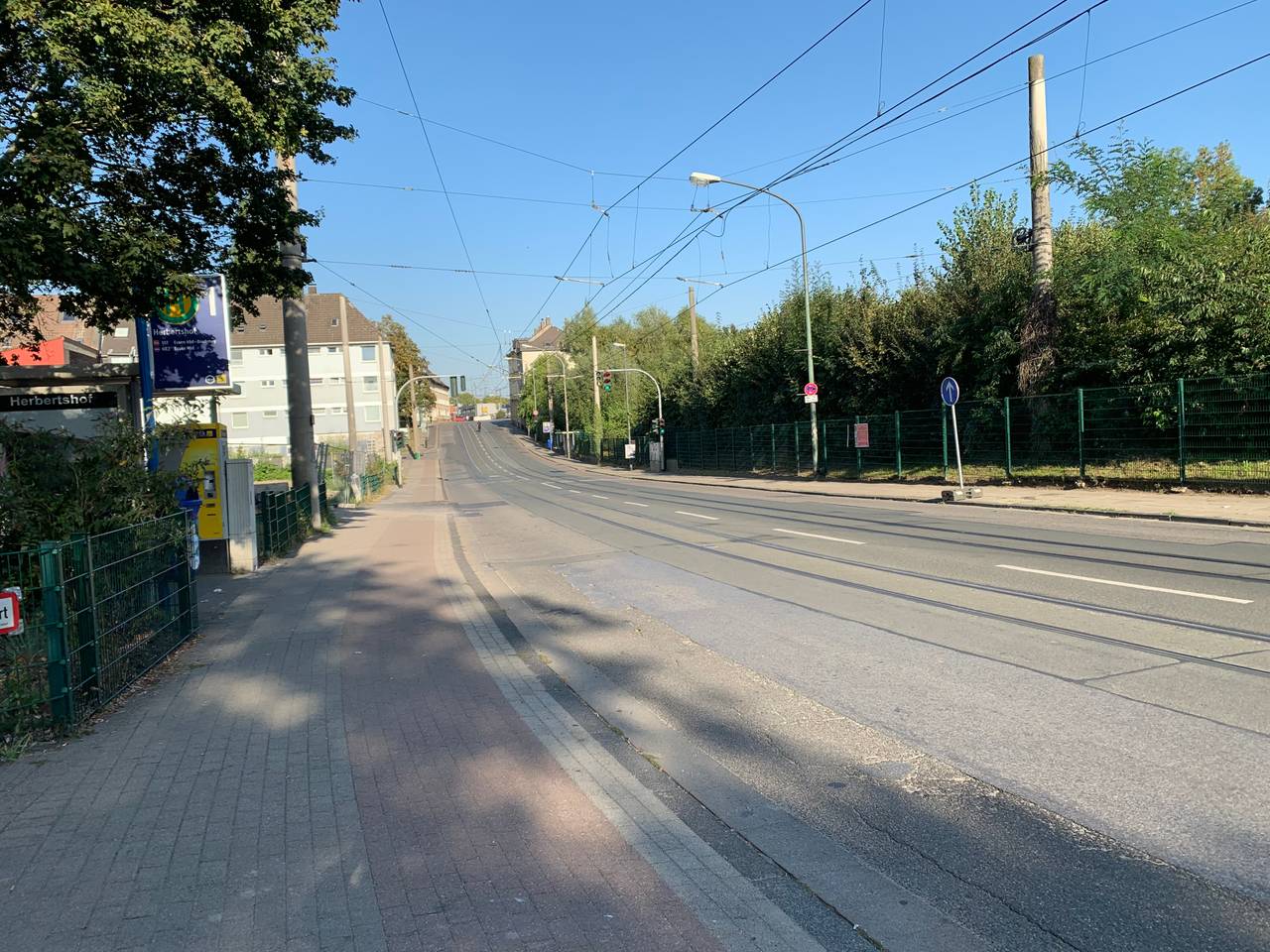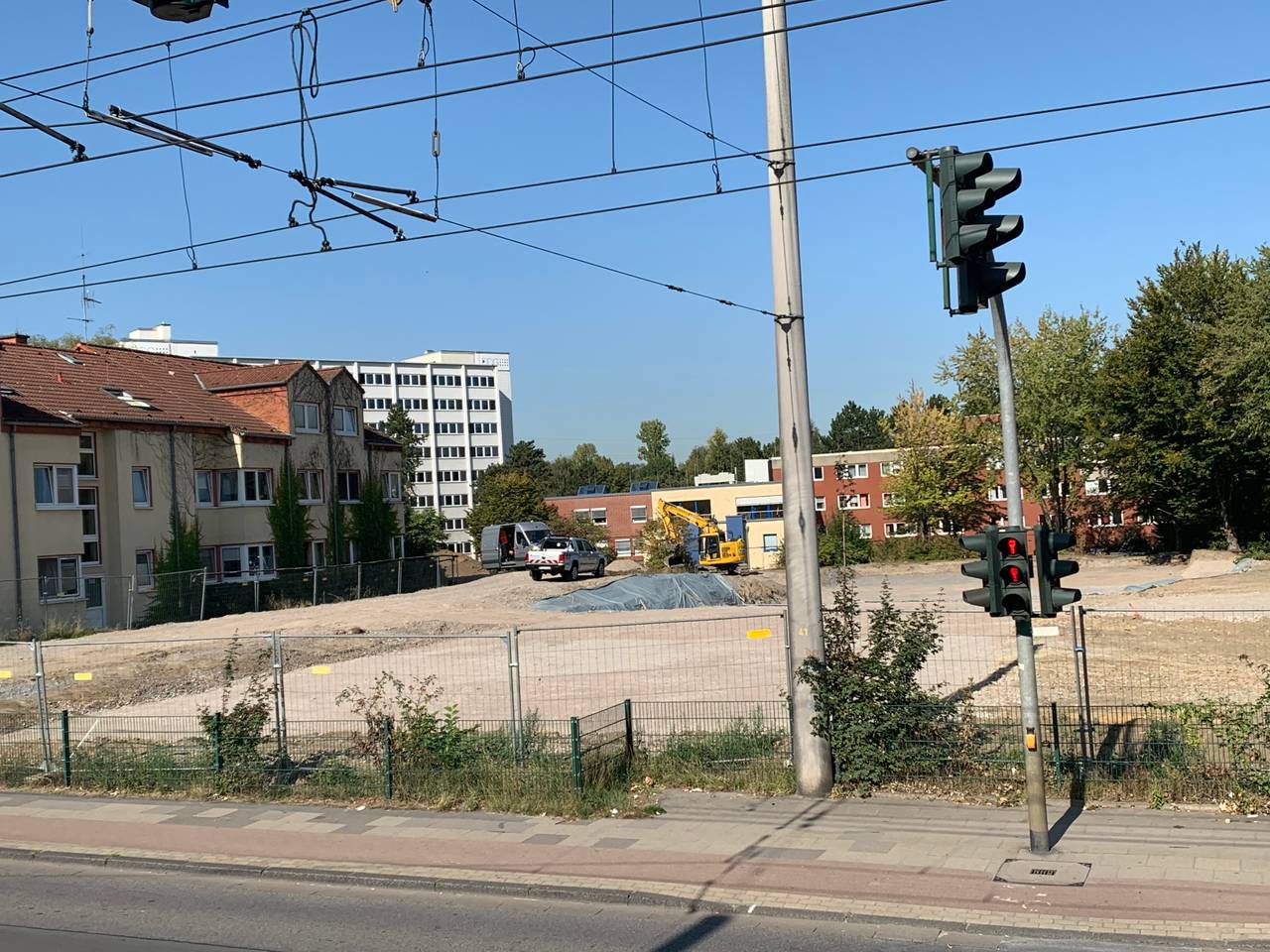 11:37 Uhr: Die Bombe liegt auf einer Baustelle an der Essener Straße, in Höhe der Bahnhaltestelle Herbertshof neben einer Behinderten-Wohnanlage.