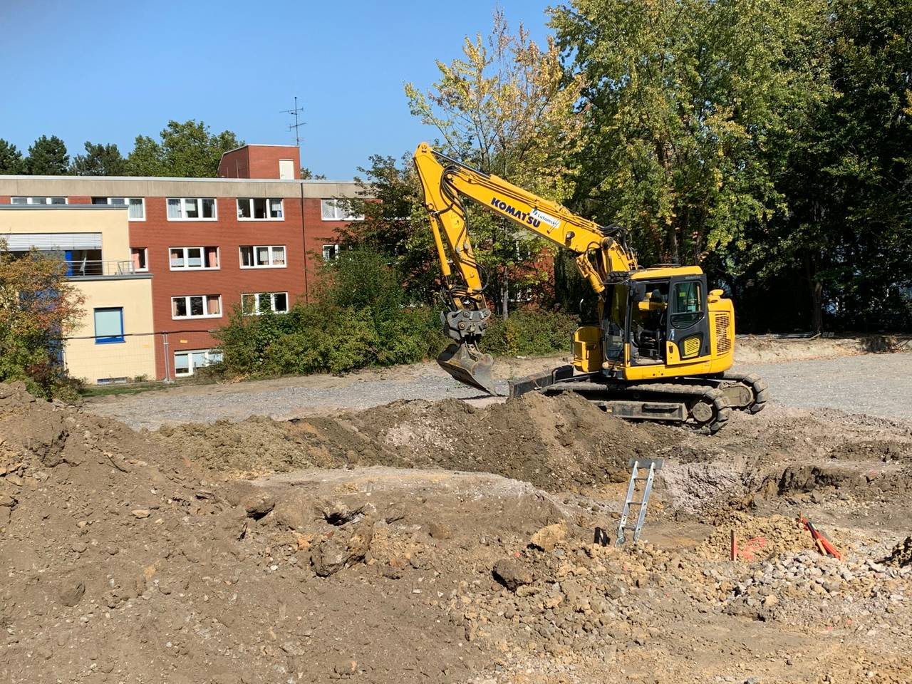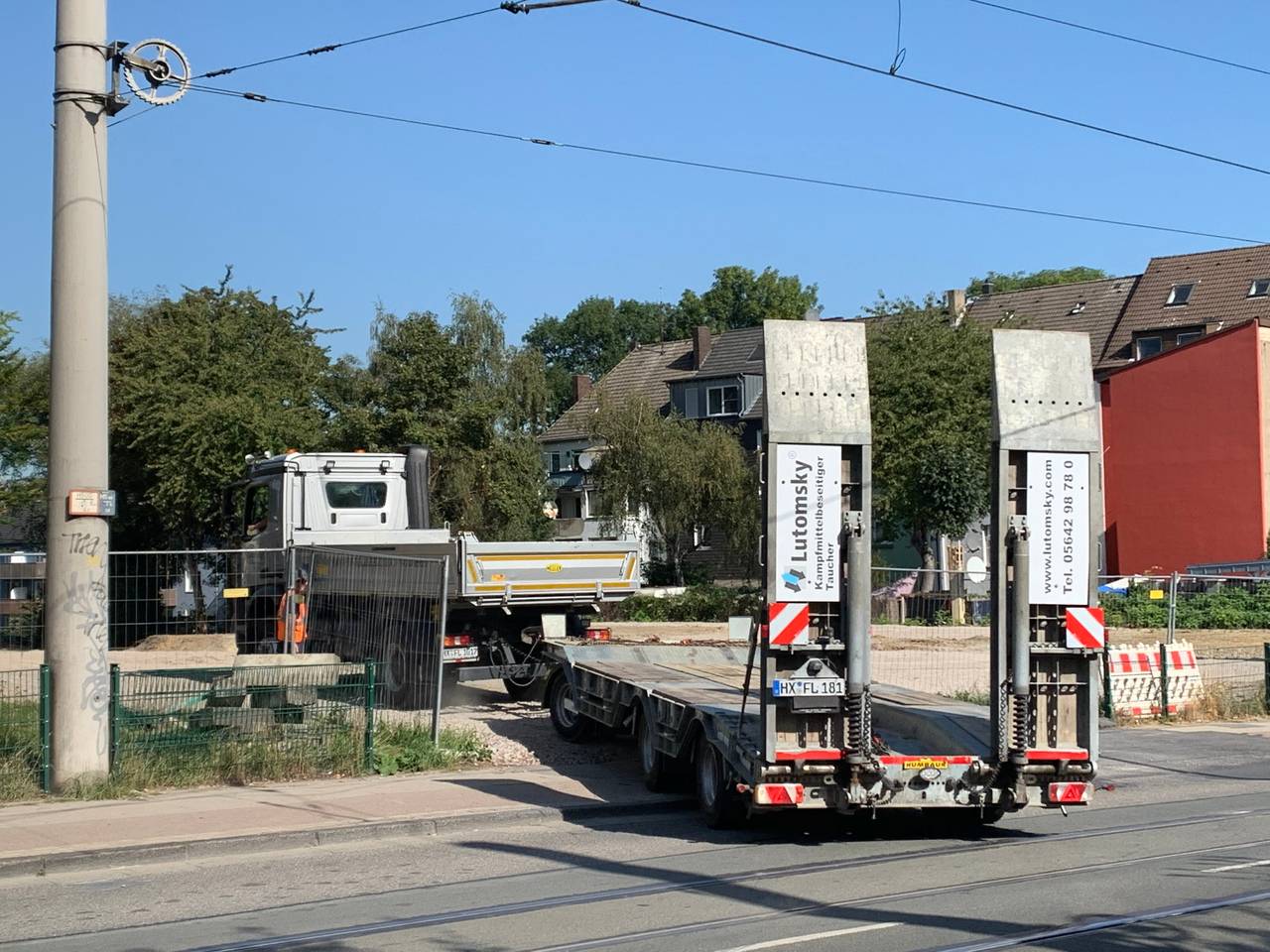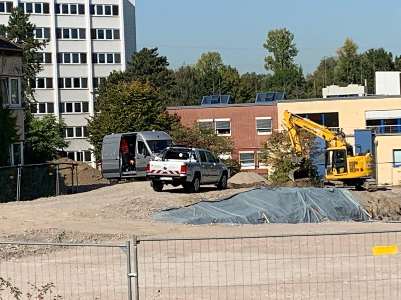 11:37 Uhr: Die Bombe liegt auf einer Baustelle an der Essener Straße, in Höhe der Bahnhaltestelle Herbertshof neben einer Behinderten-Wohnanlage.
