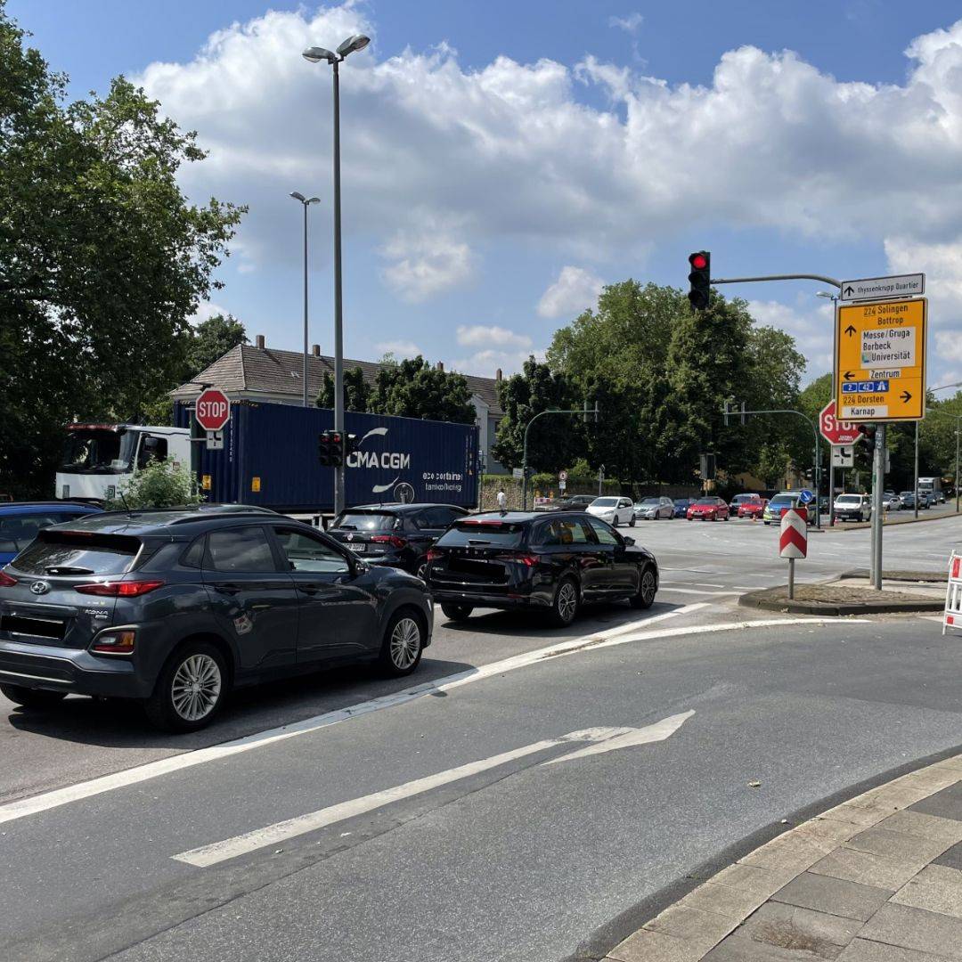 11:41 Uhr: Auf der Altenessener Straße in Richtung Innenstadt gibt es einen größeren Rückstau. Das ist die Umleitung. Die Straße ist nur einspurig befahrbar.