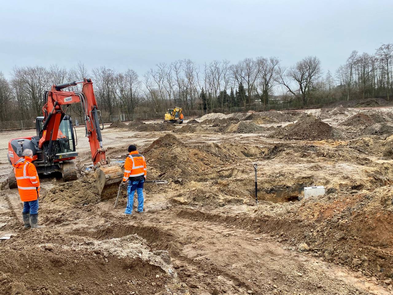 14:53 Uhr: Unser Radio Essen Stadtreporter ist vor Ort. So sieht die Baustelle aus, an der die Bombe gefunden wurde. Die Bombe liegt insgesamt 7 Meter tief. Die Baustelle ist neben dem Fußballplatz vom RWE-Leistungszentrum.
