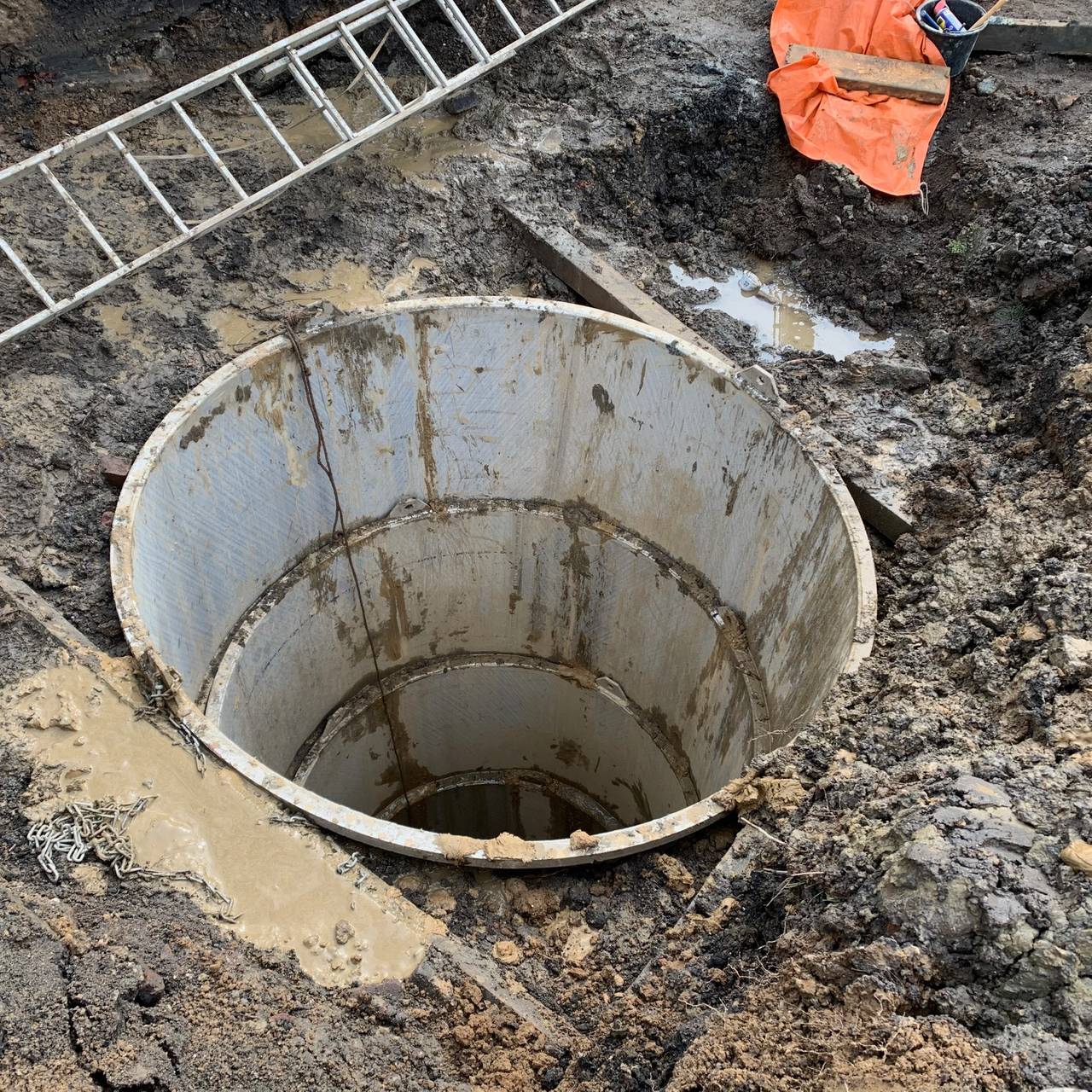 17:24 Uhr: Hier nochmal das Foto von dem Loch. In sieben Meter Tiefe liegt die 10-Zentner-Bombe.